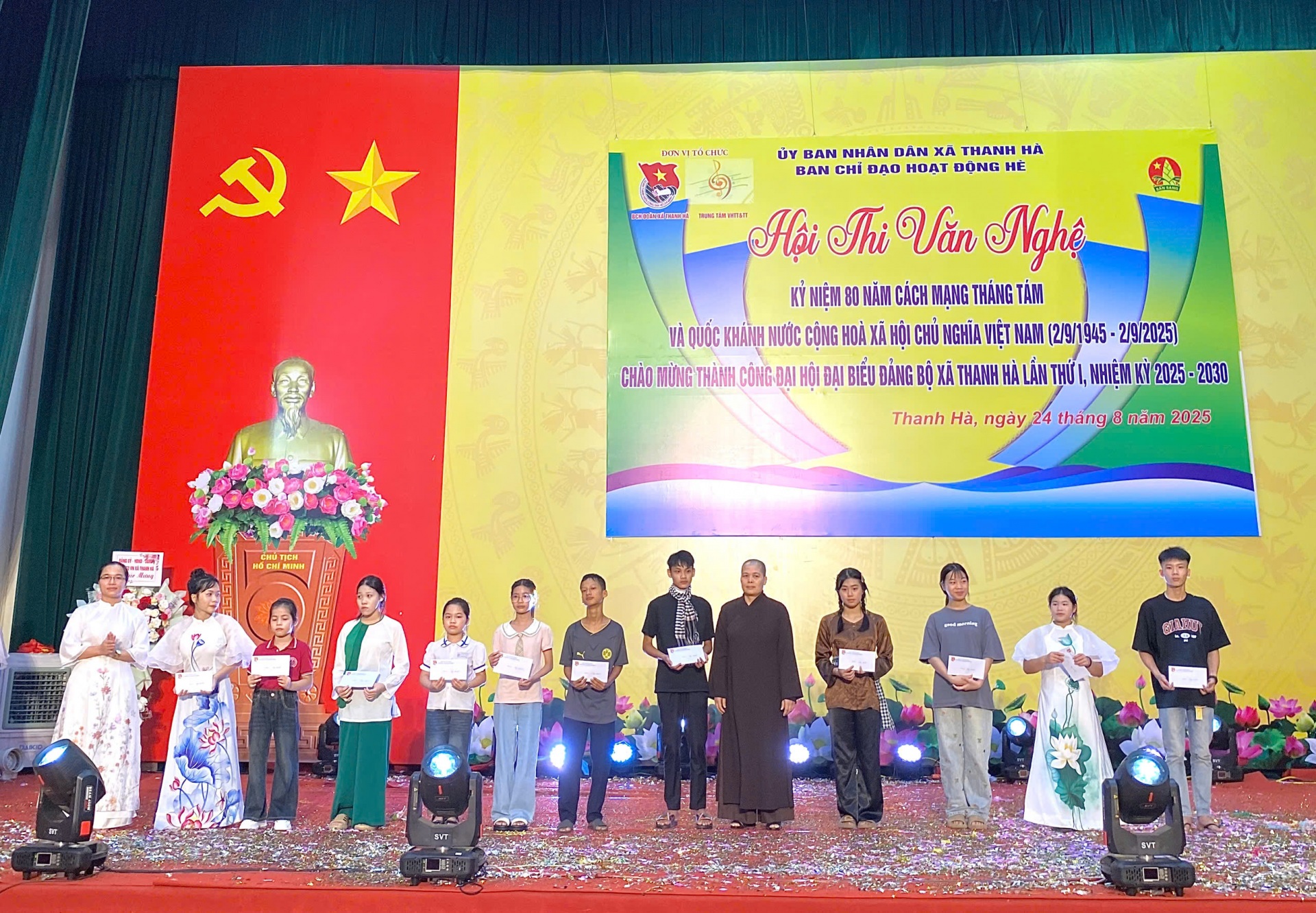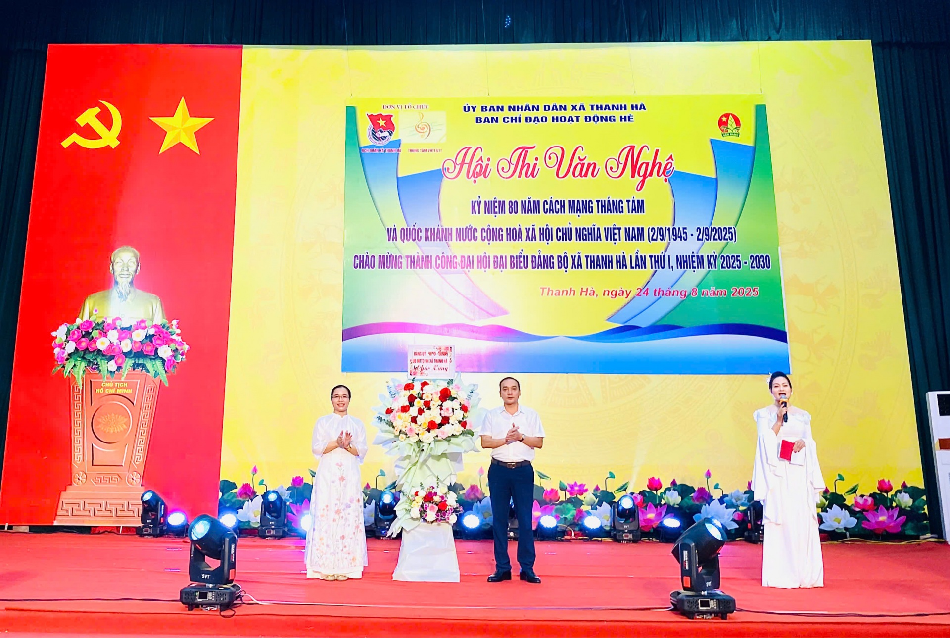 Ngày 24/8, Ban chỉ đạo Hoạt động hè xã Thanh Hà tổ chức Hội thi văn nghệ kỷ niệm 80 năm Cách mạng Tháng Tám và Quốc khánh nước Cộng hòa xã hội chủ nghĩa Việt Nam (2/9/1945 - 2/9/2025); Chào mừng thành công Đại hội đại biểu Đảng bộ xã Thanh Hà lần thứ I, nhiệm kỳ 2025-2030. Đồng chí Bùi Văn Khiêm, Phó Bí thư Thường trực Đảng ủy xã dự và tặng hoa chúc mừng Hội thi.