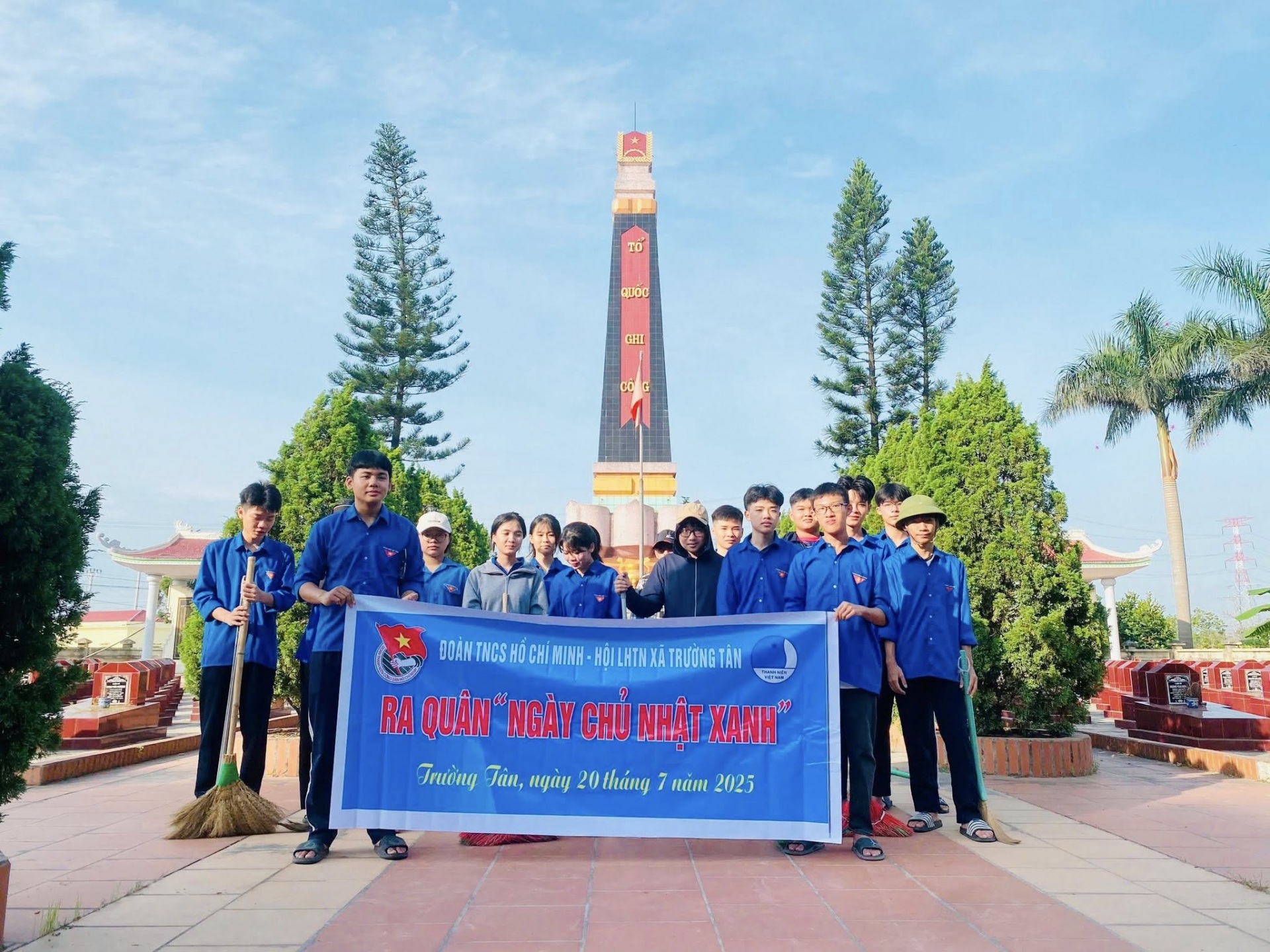 Sáng ngày 20/7/2025, Đoàn xã Trường Tân tổ chức ra quân đợt cao điểm "Ngày chủ nhật xanh" tại nghĩa trang liệt sỹ