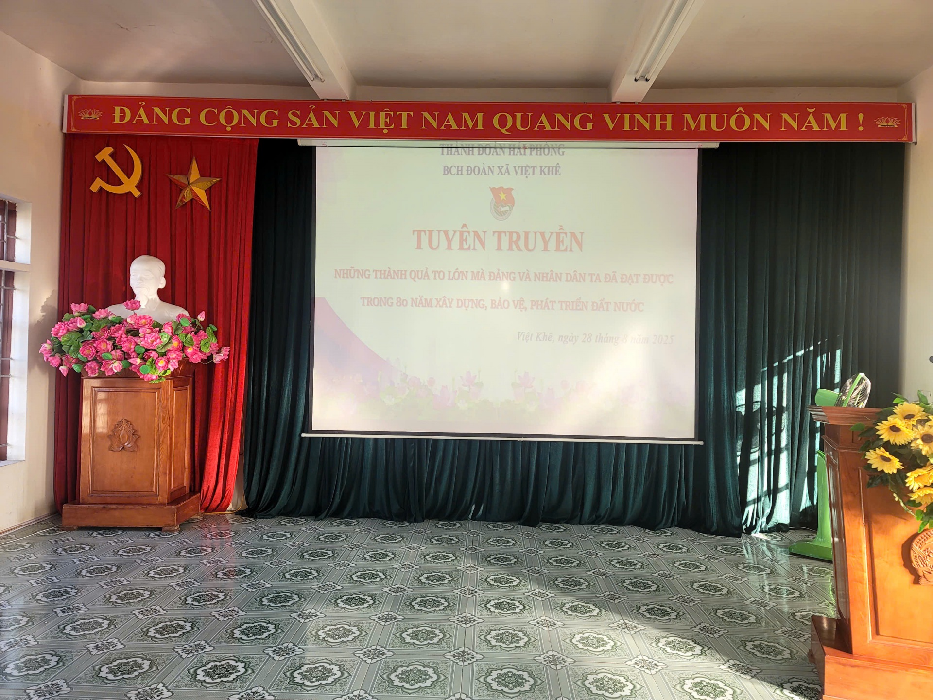 Ngày 28/8/2025, hướng tới kỷ niệm 80 năm những mốc son lịch sử hào hùng của dân tộc, Ban Chấp hành Đoàn xã Việt Khê đã tổ chức buổi tuyên truyền chuyên đề về những thành tựu to lớn mà Đảng và Nhân dân ta đã đạt được trong suốt chặng đường 80 năm xây dựng, bảo vệ và phát triển đất nước.