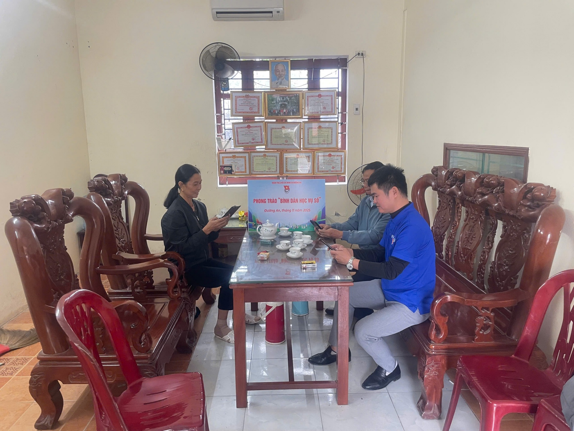 Trong tháng 10, 11/2025 Đoàn xã tiếp tục đẩy mạnh phong trào Bình dân học vụ số, cụ thể các bạn đoàn viên, thanh niên tình nguyện tận tình hướng dẫn người dân truy cập internet và sử dụng các kỹ năng số thiết yếu, sử dụng phần mềm, ứng dụng Vneid và mạng xã hội một cách văn minh, bảo đảm an toàn, bảo mật thông tin ở mức cơ bản, tránh bị lừa đảo số; nhận diện và phòng ngừa thông tin xấu, độc trên không gian số.