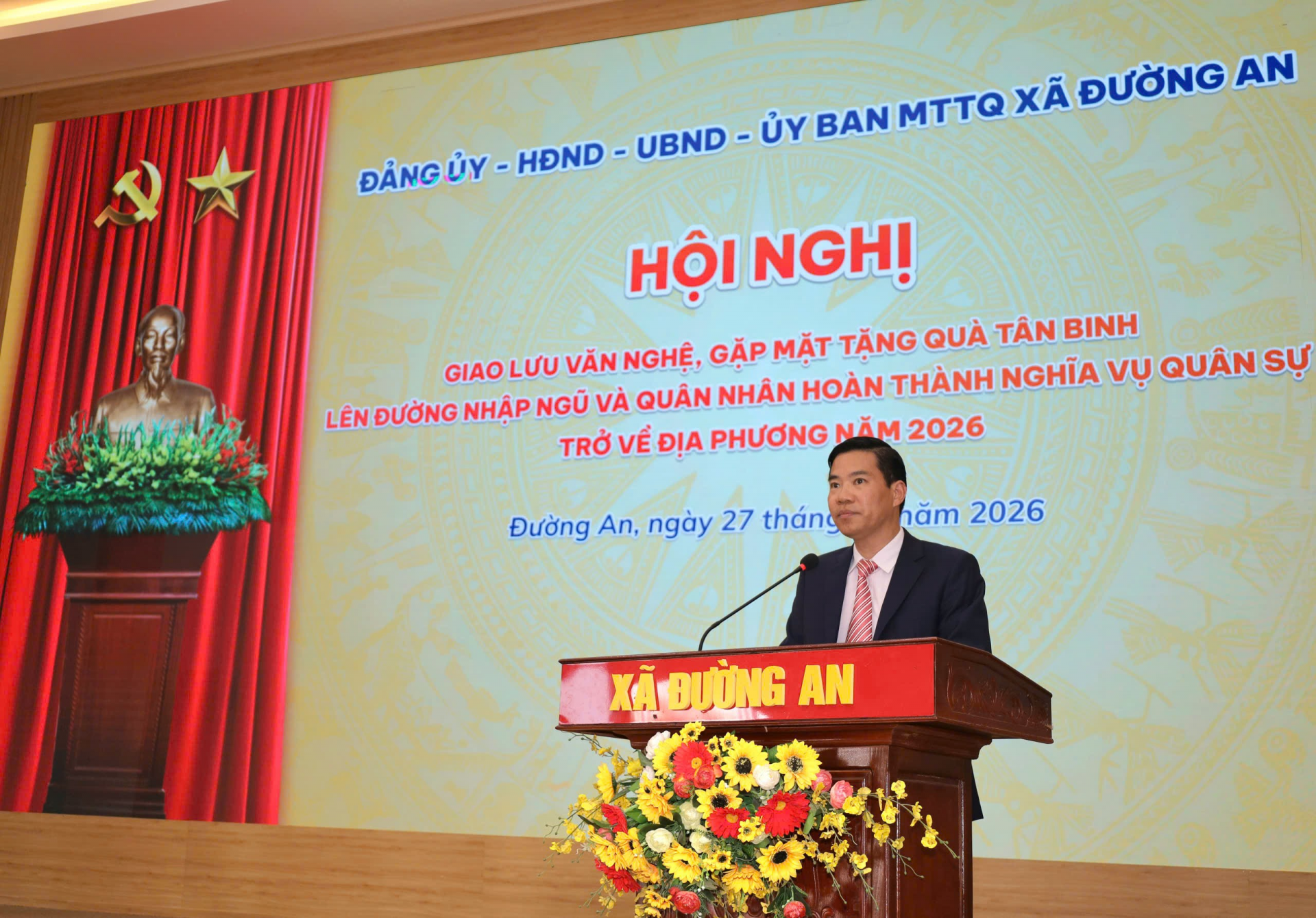 Chiều 27/02/2026, BTV Đoàn xã Đường An phối hợp với Ban Chỉ huy quân sự xã tổ chức chương trình giao lưu văn nghệ, gặp mặt tặng quà tân binh lên đường nhập ngũ và quân nhân hoàn thành nghĩa vụ quân sự trở về địa phương năm 2026
