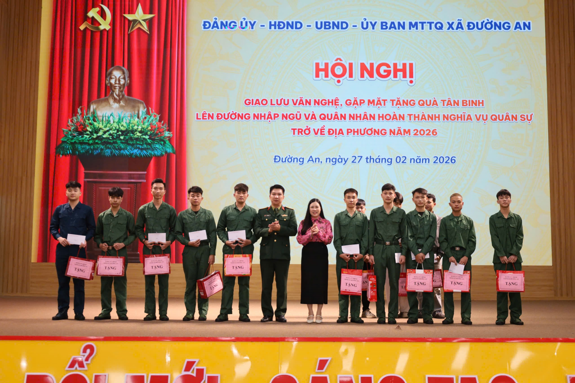 ĐƯỜNG AN: TỔ CHỨC CHƯƠNG TRÌNH GIAO LƯU VĂN NGHỆ, GẶP MẶT TẶNG QUÀ TÂN BINH LÊN ĐƯỜNG NHẬP NGŨ VÀ QUÂN NHÂN HOÀN THÀNH NGHĨA VỤ QUÂN SỰ TRỞ VỀ ĐỊA PHƯƠNG NĂM 2026