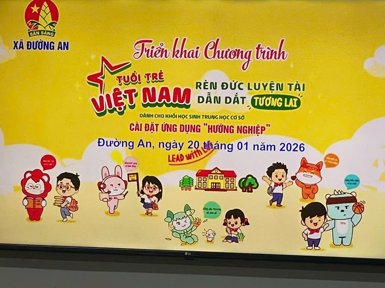 Ngày 20/01/2026, Hội Đồng đội xã Đường An tổ chức triển khai chương trình tư vấn hướng nghiệp và trải nghiệm nghề nghiệp cho đội viên lớn thông qua chương trình "Tuổi trẻ Việt Nam, rèn đức luyện tài, dẫn dắt tương lai" và cài đặt ứng dụng hướng nghiệp tại Liên đội trường THCS Vũ Hữu