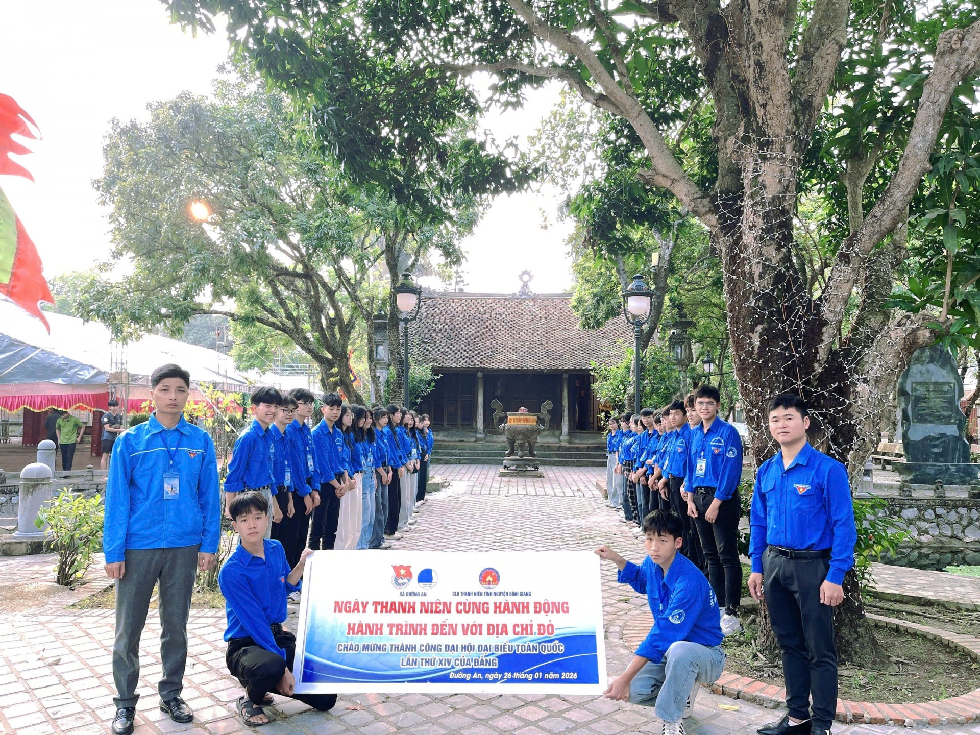 Ngày 26/01/2026, BTV Đoàn xã – Hội LHTN Việt Nam xã Đường An phối hợp CLB TNTN Bình Giang tổ chức ngày thanh niên cùng hành động, hành trình đến với địa chỉ đỏ chào mừng thành công Đại hội đại biểu toàn quốc lần thứ XIV của Đảng tại khu di tích lịch sử miếu Mộ Trạch