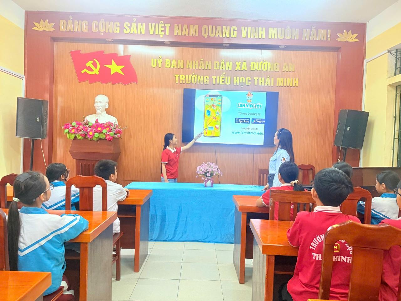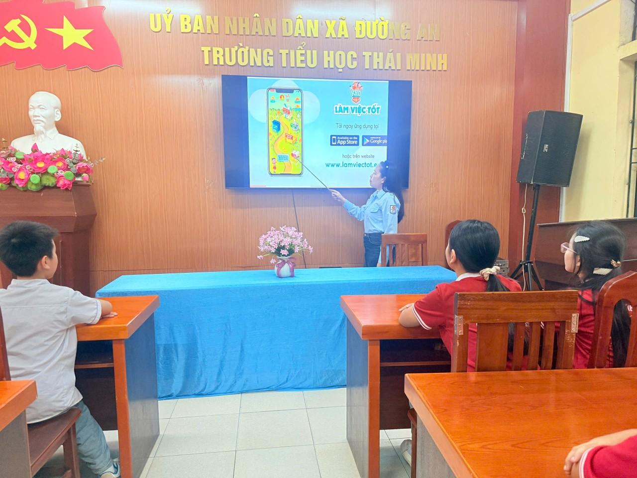 Ngoài ra hướng dẫn các em tải ứng dụng “Làm việc tốt” để đăng ký tham với nhiều tính năng phù hợp với lứa tuổi và nhu cầu học tập, vui chơi, rèn luyện của các em, được tích hợp với các nội dung thực hiện của chương trình “Rèn luyện đội viên”. Điểm nổi bật của ứng dụng này là kết nối được sự tham gia của tổ chức Đội với gia đình, nhà trường và xã hội trong việc giáo dục, rèn luyện và chăm lo, hỗ trợ cho thiếu nhi.