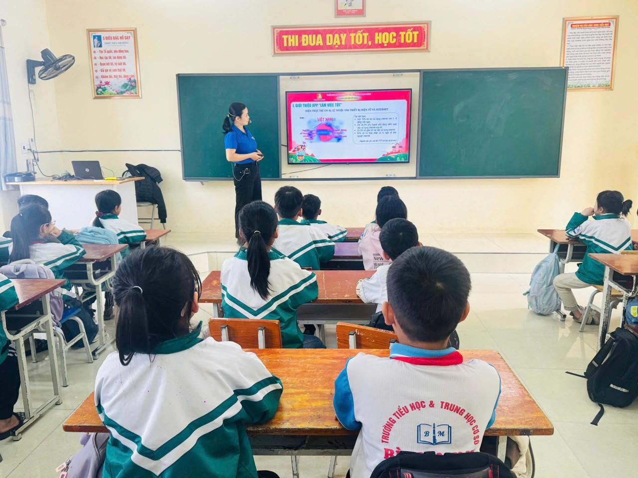 Ngoài ra hướng dẫn các em tải ứng dụng “Làm việc tốt” để đăng ký tham với nhiều tính năng phù hợp với lứa tuổi và nhu cầu học tập, vui chơi, rèn luyện của các em, được tích hợp với các nội dung thực hiện của chương trình “Rèn luyện đội viên”. Điểm nổi bật của ứng dụng này là kết nối được sự tham gia của tổ chức Đội với gia đình, nhà trường và xã hội trong việc giáo dục, rèn luyện và chăm lo, hỗ trợ cho thiếu nhi.