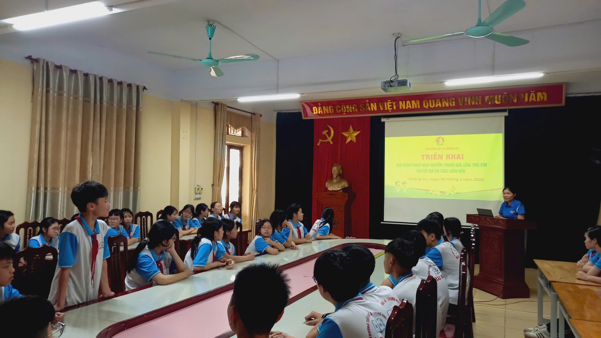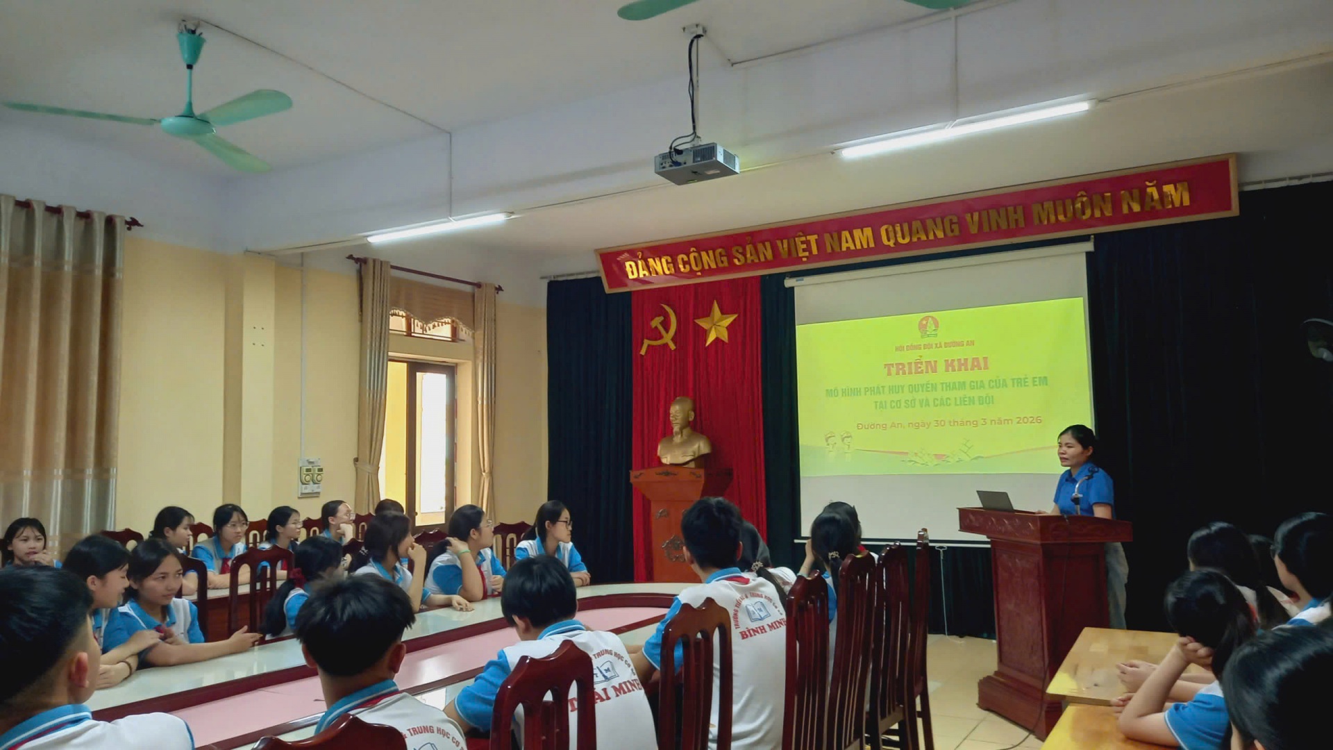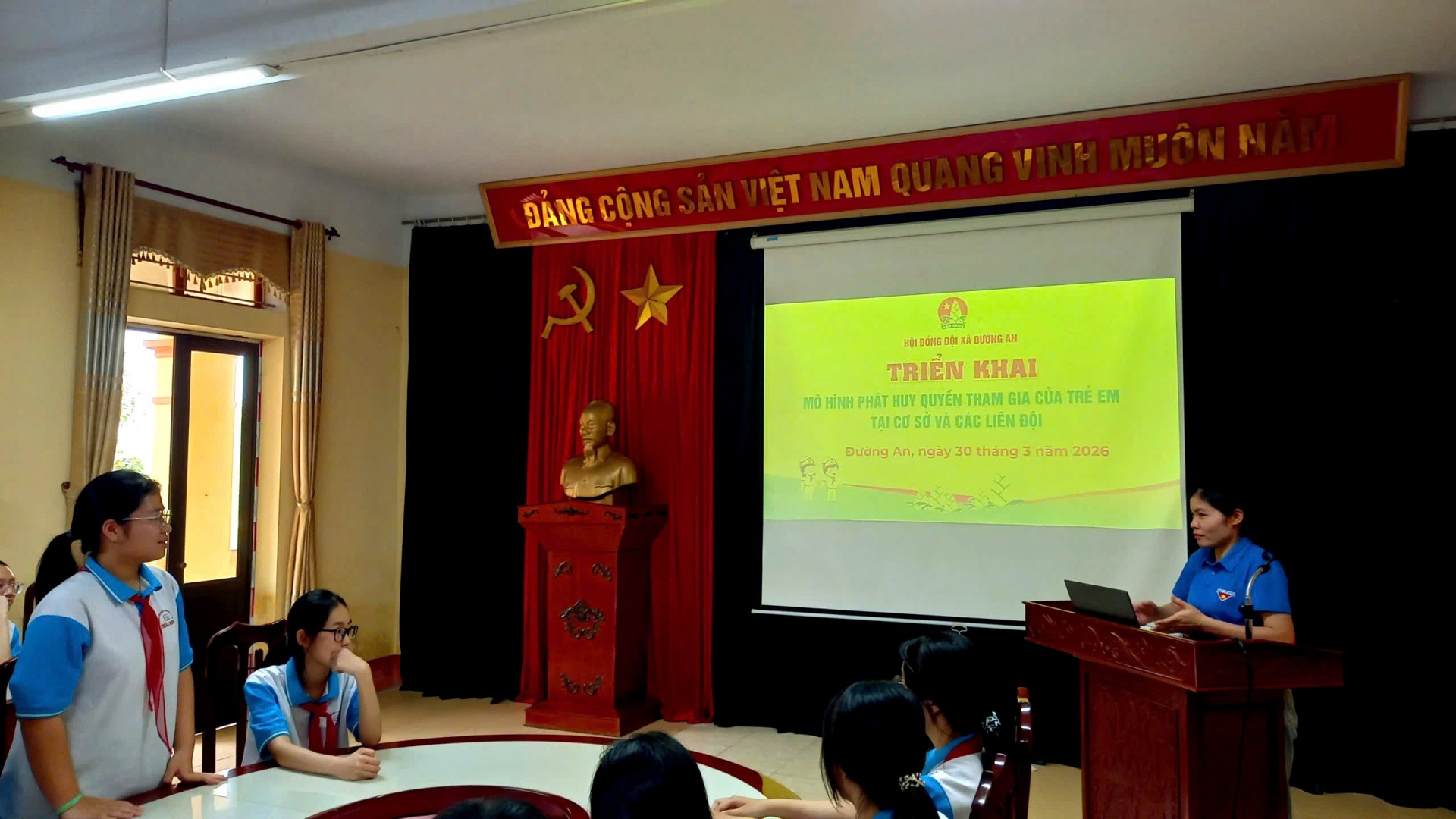 Nhằm cụ thể hóa việc thực hiện quyền trẻ em, đặc biệt là quyền được tham gia vào các vấn đề liên quan đến trẻ em. Ngày 30/3/2026, Hội đồng Đội xã Đường An đã triển khai và nhân rộng hoạt động của mô hình phát huy quyền tham gia của trẻ em tại cơ sở và các liên đội