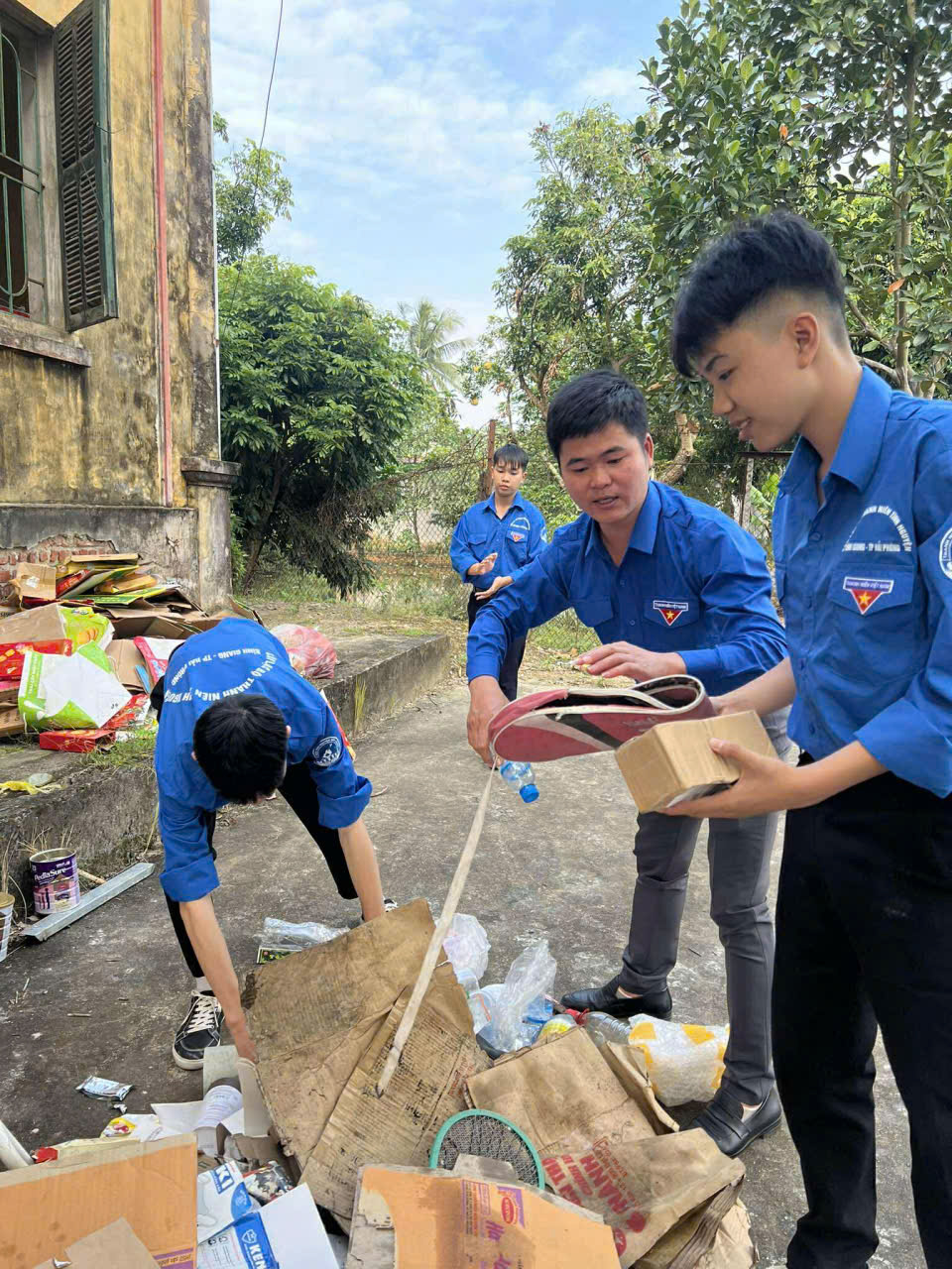 Đoàn xã đã phối hợp thành lập đội hình đi các thôn đến các hộ gia đình xin, thu gom các vỏ lon, phế liệu và tuyên truyền hướng dẫn người dân phân loại rác thải tại nhà, các vỏ lon để gây quỹ để tổ chức tặng quà cho học sinh và gia đình chính sách, người dân trong và ngoài xã.