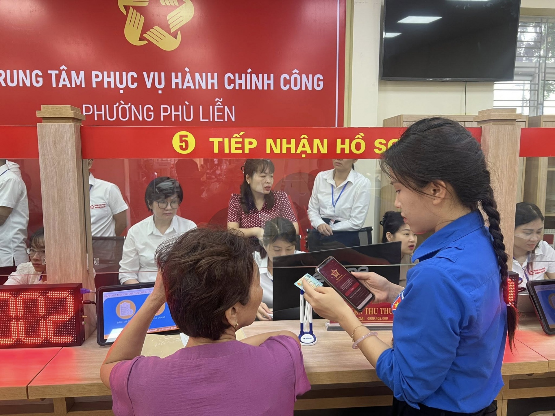 Nhằm phát huy vai trò xung kích, tình nguyện của tuổi trẻ trong tham gia cải cách hành chính và chuyển đổi số, Đoàn Thanh niên phường Phù Liễn đã duy trì hiệu quả đội hình thanh niên tình nguyện hỗ trợ tại Trung tâm Phục vụ Hành chính công phường.