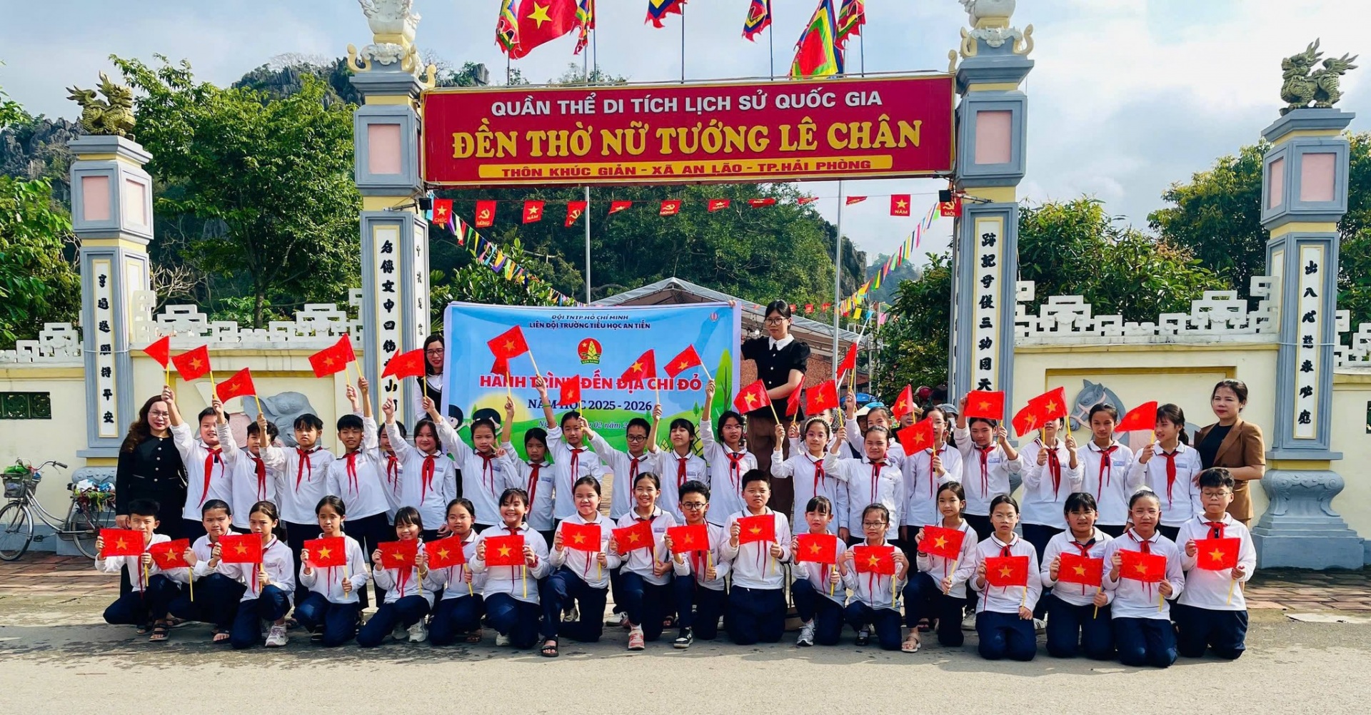 + Liên đội Tiểu học An Tiến: thăm đền thờ nữ tướng Lê chân