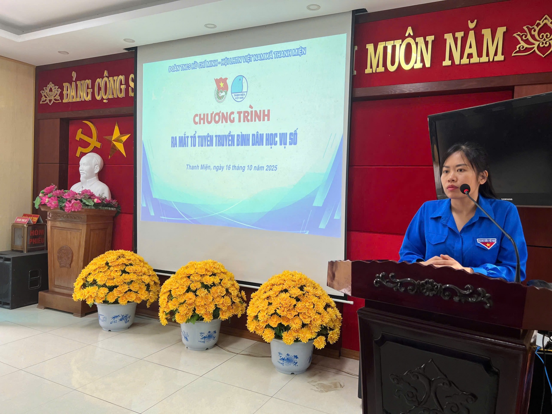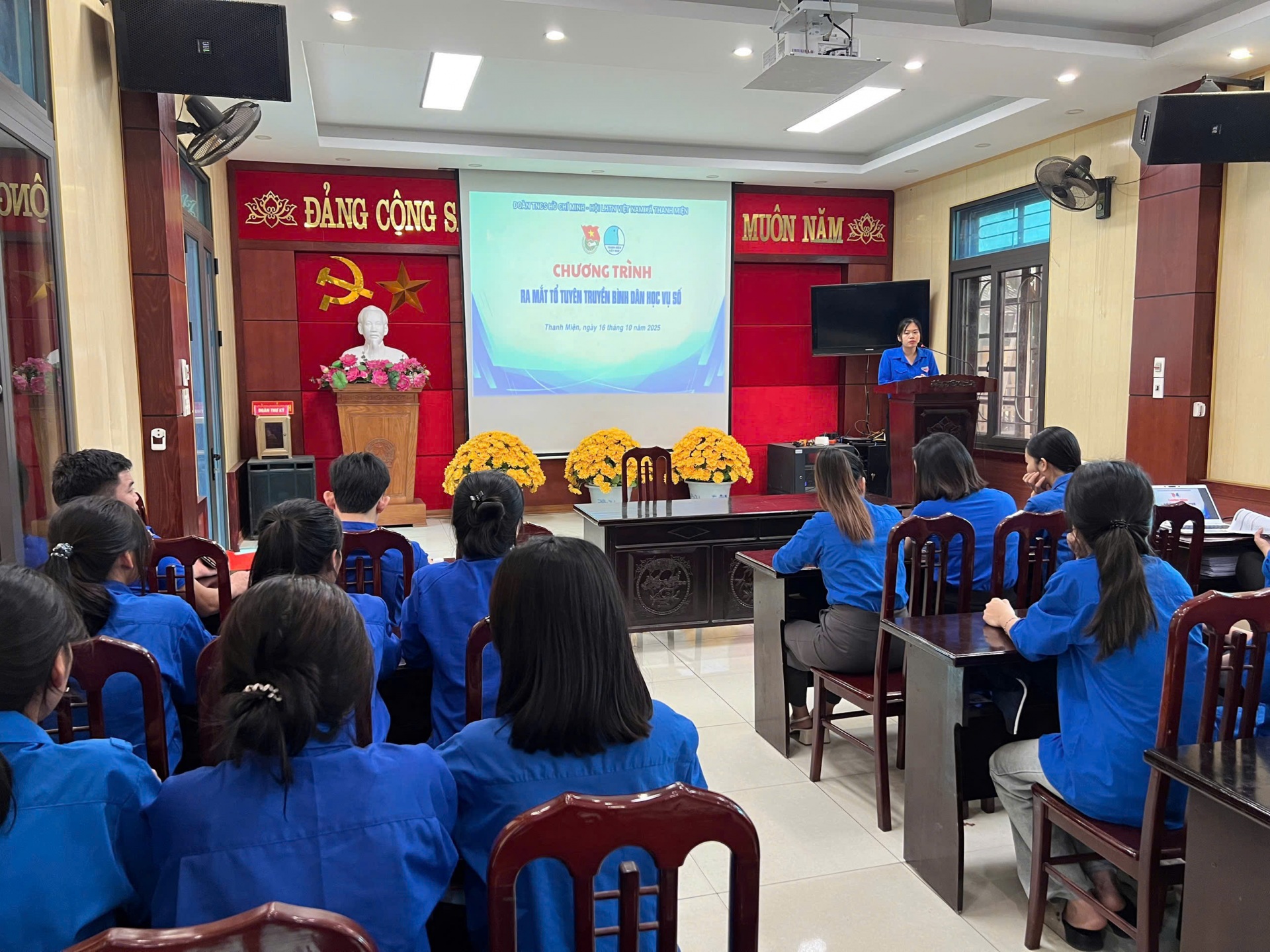 Ngày 16/10/2025, tại Hội trường UBND xã Thanh Miện, Đoàn Thanh niên Cộng sản Hồ Chí Minh – Hội Liên hiệp Thanh niên Việt Nam xã Thanh Miện đã tổ chức Chương trình ra mắt Tổ tuyên truyền Bình dân học vụ số, với sự tham gia của cán bộ Đoàn, đoàn viên, thanh niên trên địa bàn xã.