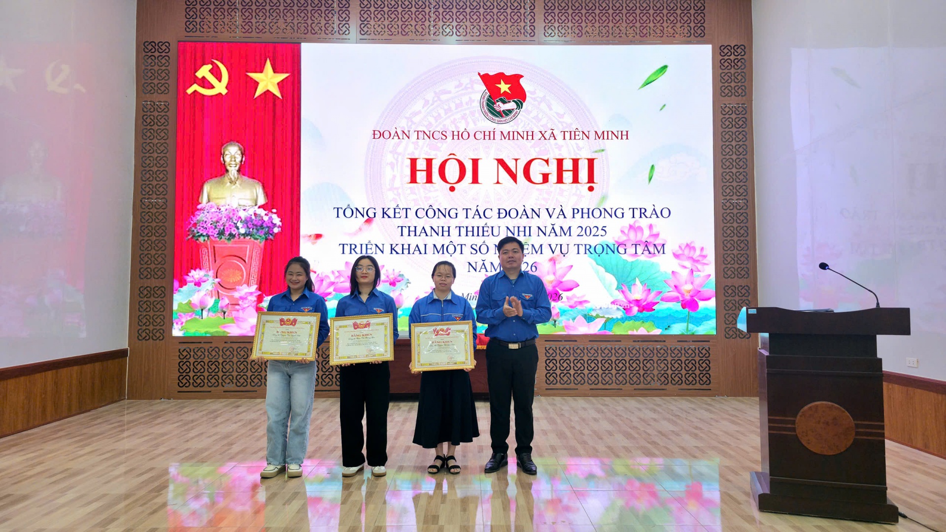Bên cạnh đó, nhiều tập thể và cá nhân có thành tích xuất sắc trong công tác Đoàn và phong trào thanh thiếu nhi năm 2025 đã được biểu dương, khen thưởng, tạo động lực để tuổi trẻ Tiên Minh tiếp tục phát huy tinh thần xung kích, sáng tạo trong thời gian tới.