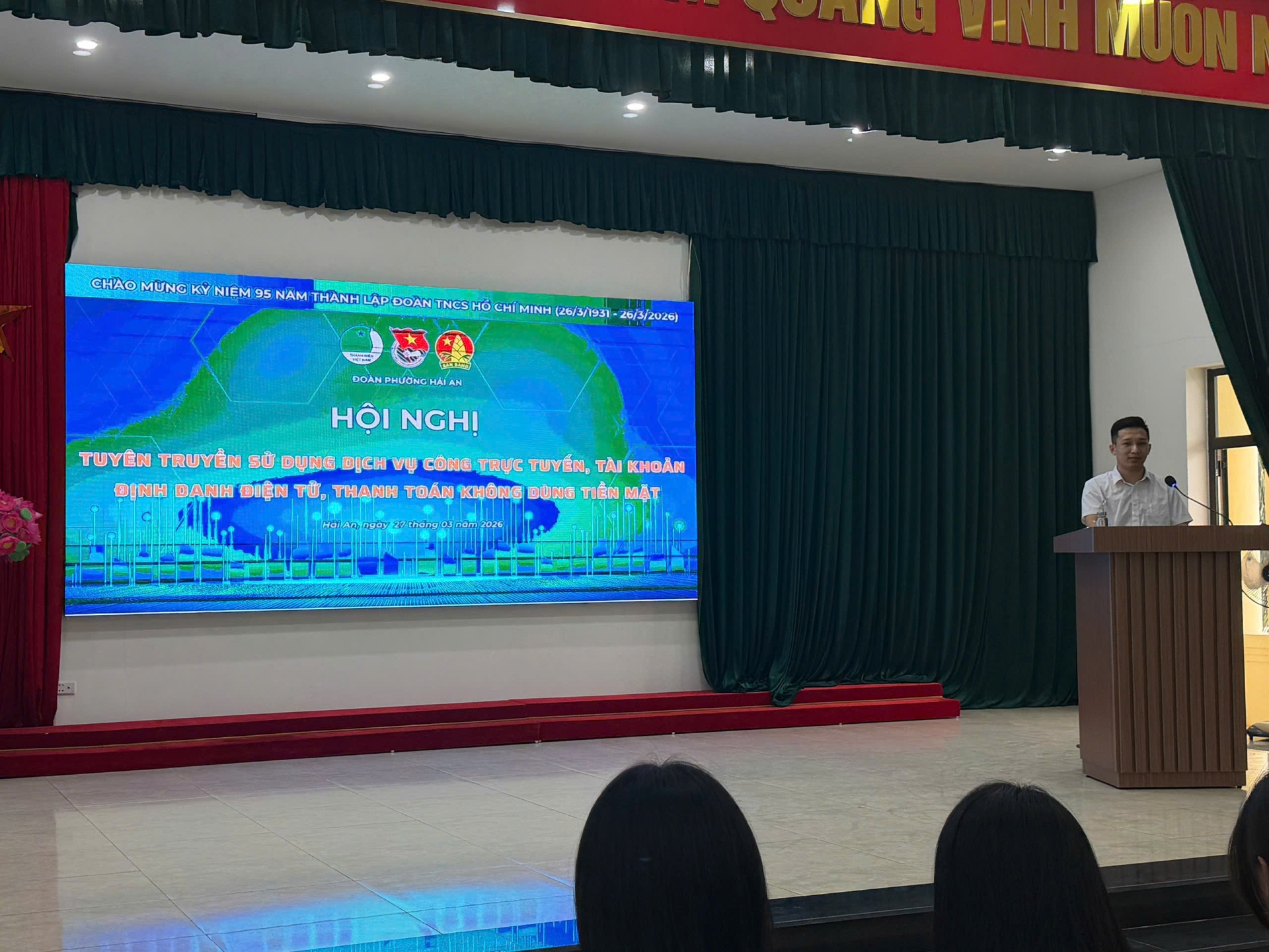 Hướng tới kỷ niệm 95 năm Ngày thành lập Đoàn TNCS Hồ Chí Minh (26/3/1931 – 26/3/2026) và chào mừng thành công cuộc bầu cử Đại biểu Quốc hội khóa XVI, đại biểu HĐND các cấp nhiệm kỳ 2026 – 2031. Ngày 26/3/2026, Nhằm đẩy mạnh ứng dụng công nghệ thông tin trong đời sống và phát huy vai trò xung kích của tuổi trẻ trong công cuộc chuyển đổi số quốc gia, Đoàn phường Hải An đã tổ chức chuỗi hoạt động tuyên truyền, hướng dẫn đoàn viên thanh niên (ĐVTN) tiếp cận các tiện ích số hiện đại thông qua Hội nghị "Tuyên truyền sử dụng dịch vụ công trực tuyến, tài khoản định danh điện tử, thanh toán không dùng tiền mặt" và "Hội nghị tuyên truyền nâng cao kỹ năng số cho đoàn viên, thanh niên và hoạt động triển khai phong trào gia đình số năm 2026". Tại chương trình Đ/c Nguyễn Hữu Thịnh - UVBCH Đoàn trường THPT chuyên Trần Phú đã hướng dẫn, phổ cấp nội dung đến 65 ĐVTN Tại các TDP trên địa bàn phường, cụ thể như sau:
