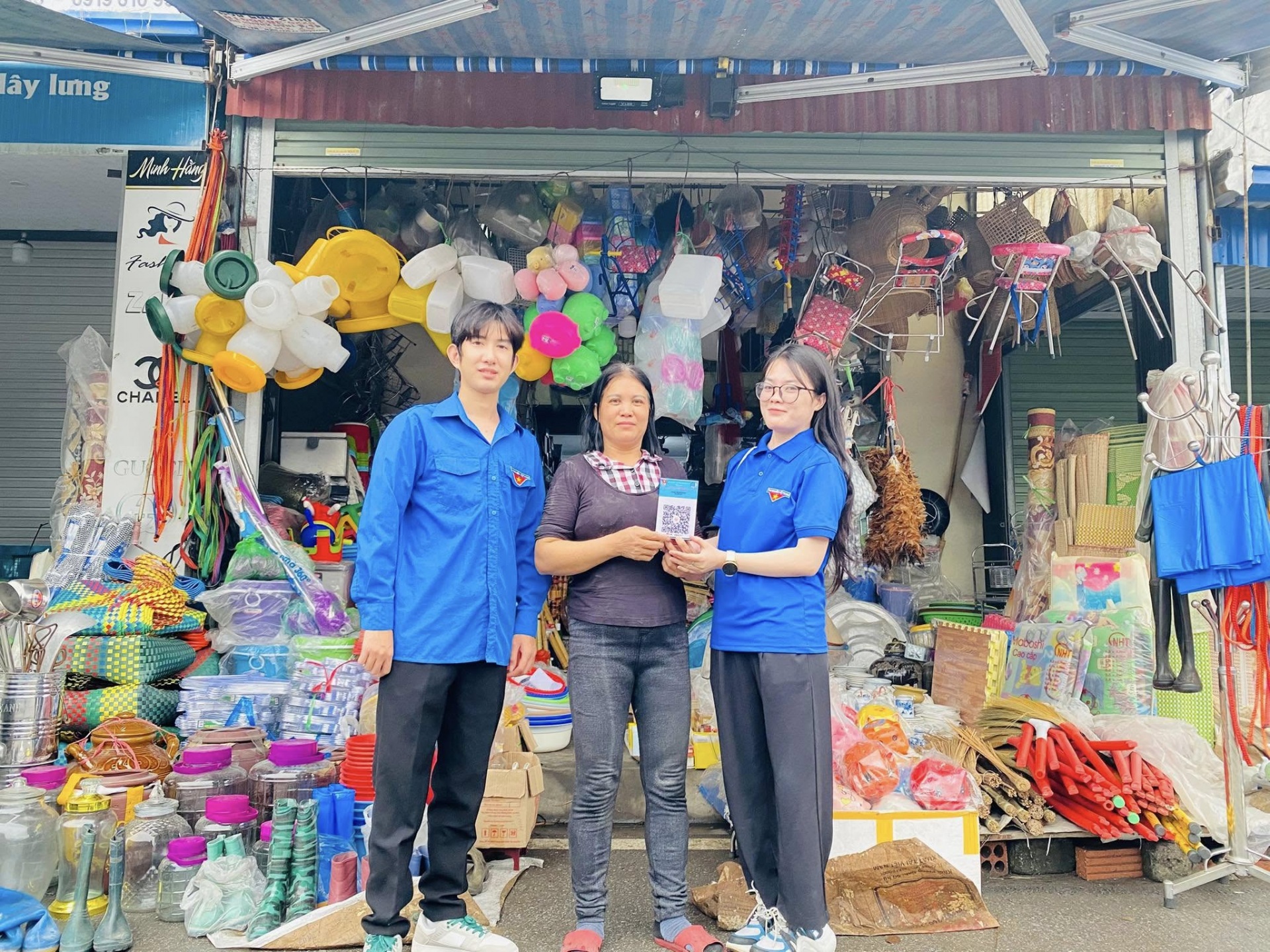 2. Triển khai đội hình Bình dân học vụ số phường Lưu Kiếm: Tặng bảng mã QR tài khoản ngân hàng, tuyên truyền, vận động tiểu thương, nhân dân khu vực Chợ Tổng xây dựng mô hình: “Chợ dân sinh 4.0 - Tuyến phố không dùng tiền mặt”.