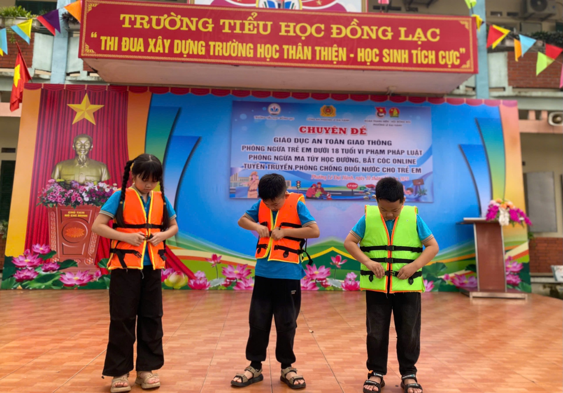 sáng 10/11/2025, Đoàn Thanh niên – Hội đồng Đội phường và Ban Giám hiệu Trường Tiểu học Đồng Lạc phối hợp Công an phường tổ chức buổi tuyên truyền, phổ biến kỹ năng phòng chống đuối nước, tai nạn thương tích và sơ cứu ban đầu cho 568 học sinh và giáo viên nhà trường