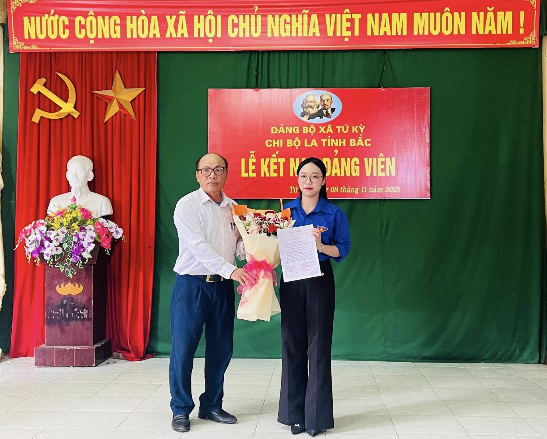 Phát biểu tại buổi lễ, đại diện Đảng ủy xã Tứ Kỳ và Chi bộ thôn La Tỉnh Bắc đã chúc mừng đồng chí Nguyễn Hương Giang, đồng thời bày tỏ niềm tin tưởng đồng chí sẽ tiếp tục phát huy vai trò tiên phong, gương mẫu của người đoàn viên – đảng viên trẻ, góp phần xây dựng Chi bộ và Đảng bộ xã ngày càng trong sạch, vững mạnh.