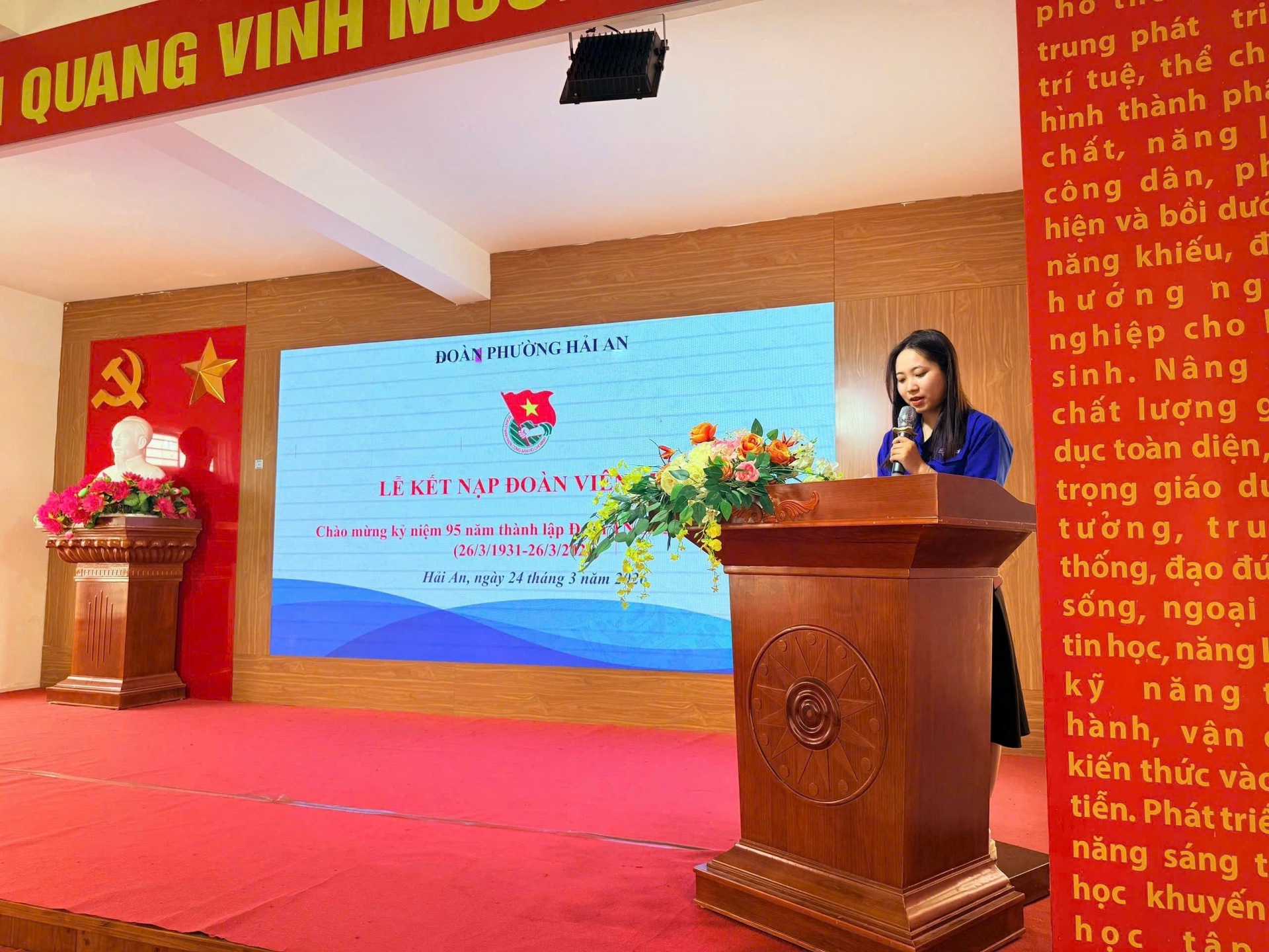 Sáng ngày 24/3/2026, Đoàn phường Hải An tổ chức Lễ kết nạp Đoàn viên mới cho 67 thanh niên ưu tú tại trường THCS Tràng Cát đủ điều kiện nhân dịp 95 năm ngày Thành lập Đoàn TNCS Hồ Chí Minh.