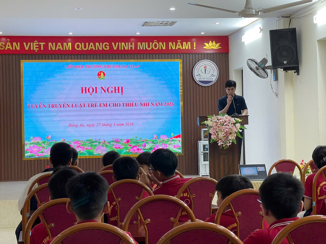 Nhằm nâng cao nhận thức, trang bị kiến thức pháp luật cho thiếu nhi, Liên đội Trường THCS Quán Toan đã tổ chức Hội nghị tuyên truyền Luật Trẻ em cho các em học sinh trong toàn trường.