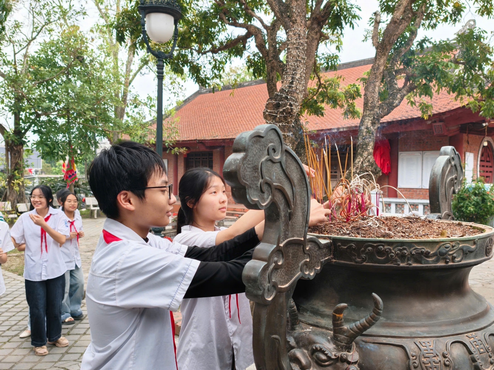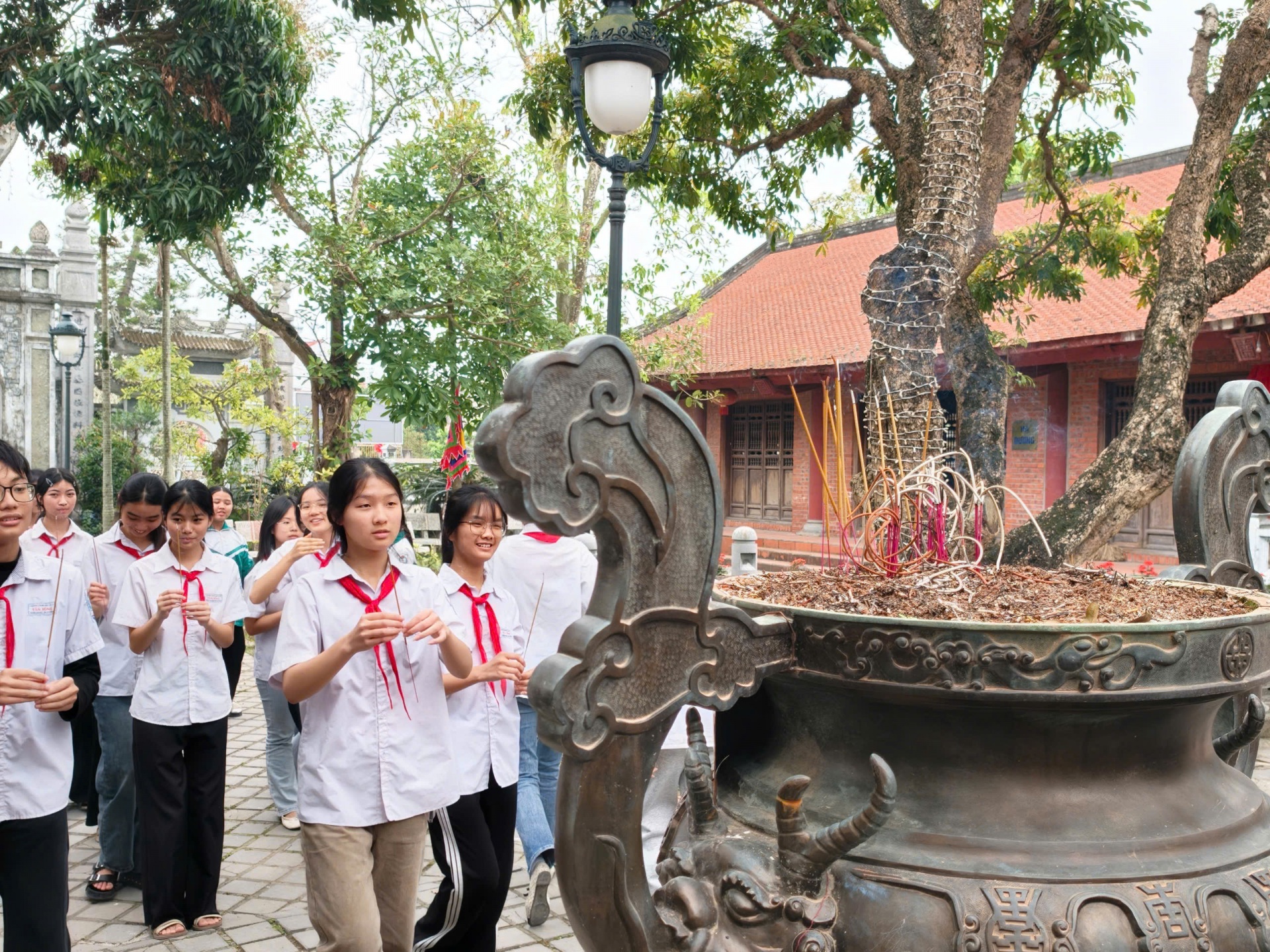 LIÊN ĐỘI THCS TÂN HỒNG: TỔ CHỨC HÀNH TRÌNH ĐẾN VỚI ĐỊA CHỈ ĐỎ TẠI KHU DI TÍCH LỊCH SỬ MIẾU MỘ TRẠCH