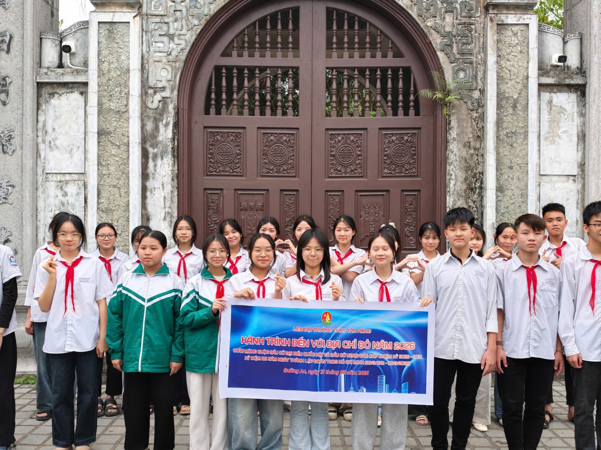 Ngày 13/03/2026, Liên đội trường THCS Tân Hồng, xã Đường An tổ chức hành trình đến với địa chỉ đỏ tại khu di tích lịch sử miếu Mộ Trạch cho các bạn đoàn viên, đội viên, học sinh. Trong khuôn khổ hành trình, các bạn đoàn viên, đội viên, học sinh đã được đã dâng hương Đức Thần Tổ Thành Hoàng làng Mộ Trạch - Vũ Hồn - Thủy tổ của dòng họ Vũ (Võ) Việt Nam. Thăm quan toàn bộ di tích Miếu Mộ Trạch và khu nhà bia 36 vị tiến sĩ thời nho học, được nghe giới thiệu sơ lược về 36 vị tiến sĩ, lịch sử dòng họ Vũ - Võ Việt Nam, về các danh nhân của dòng họ Vũ - Võ trên cả nước.