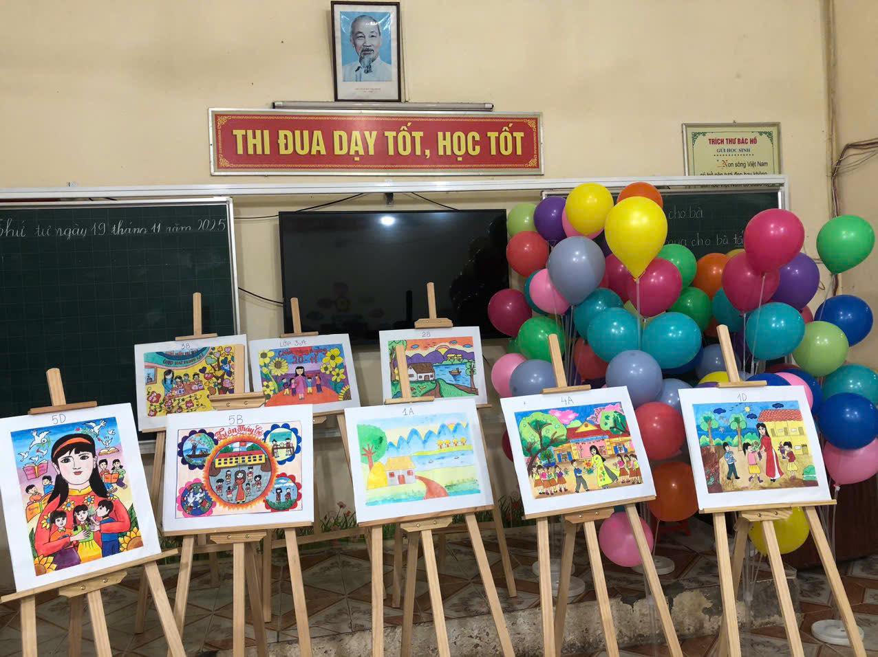 Đây là dịp để các em thể hiện tài năng, gửi gắm tình cảm tri ân đến thầy cô. Mỗi bài thuyết trình, nét vẽ, trang trí đều mang một câu chuyện đẹp và đầy cảm xúc. Hoạt động không chỉ khơi dậy tinh thần sáng tạo mà còn giúp các em thể hiện tình cảm yêu thương và tri ân thầy cô, góp phần làm ngày 20/11 thêm ý nghĩa và đáng nhớ.