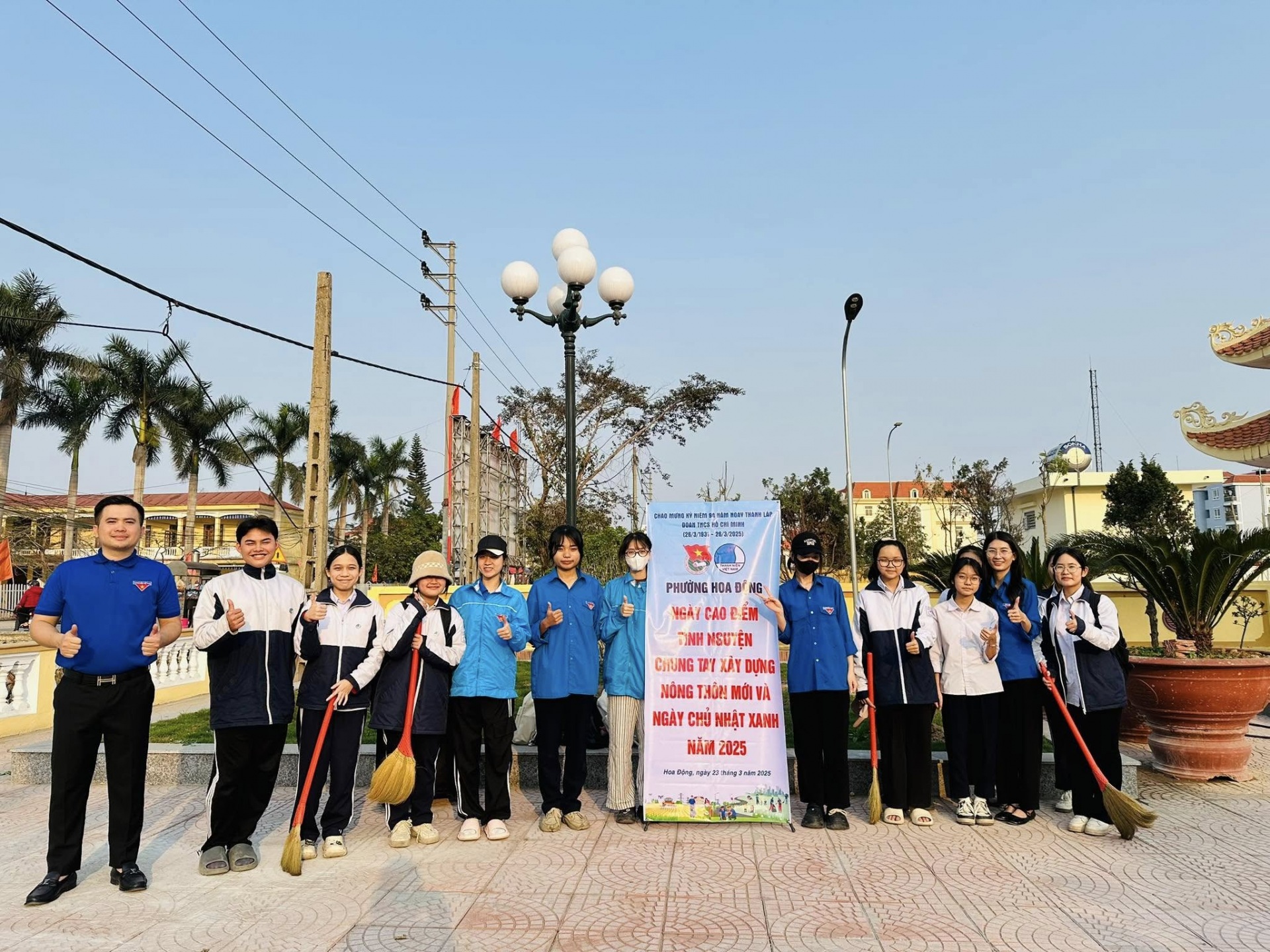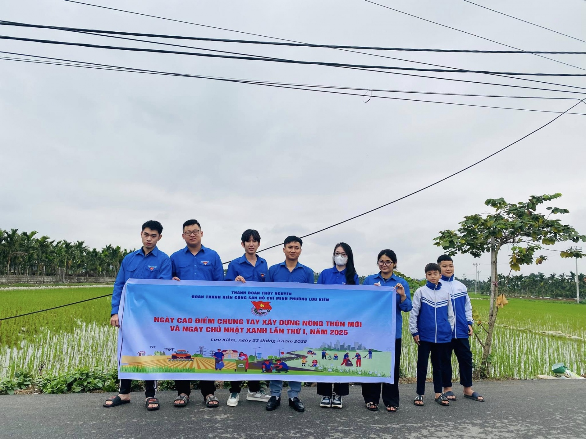 Thực hiện Công văn số 39-CV/ĐTN ngày 04/03/2025 của Ban Thường vụ Thành đoàn Thủy Nguyên về việc "Triển khai đồng loạt Ngày cao điểm tình nguyện chung tay xây dựng nông thôn mới và Ngày chủ nhật xanh". Ngày 23/03/2025, trên địa bàn thành phố, Ban Chấp hành Đoàn các xã, phường đã ra quân hưởng ứng "Ngày cao điểm tình nguyện chung tay xây dựng nông thôn mới và Ngày chủ nhật xanh" với những nội dung cụ thể: dọn vệ sinh môi trường; phát quang bụi dậm, cỏ dại; bóc tách biển quảng cáo trên tuyến đường trục chính của thành phố, tại trụ sở chính của đơn vị; triển khai phong trào phòng chống rác thải nhựa, hạn chế đồ nhựa rác nilong.