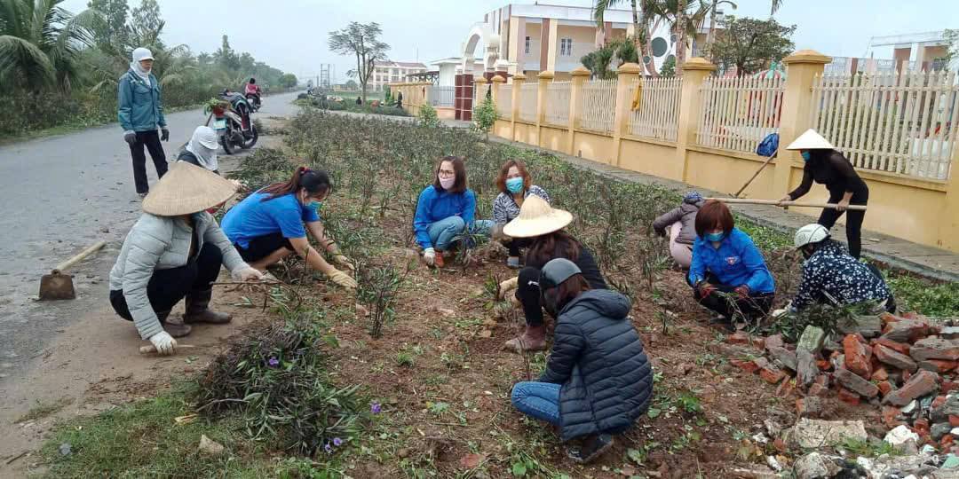 Toàn xã trồng mới 1500 cây xanh, bao gồm: 200 cây hoa mười giờ, 200 hoa chiều tím,200 cây hoa dừa cạn 100 cây lưỡi hổ, 60 cây hoa giấy, 200 cây lan chi, gần 500 các loại cây rau theo mùa: bắp cải, cần tây, cải xanh… hơn 100 các loại cây thuốc nam..