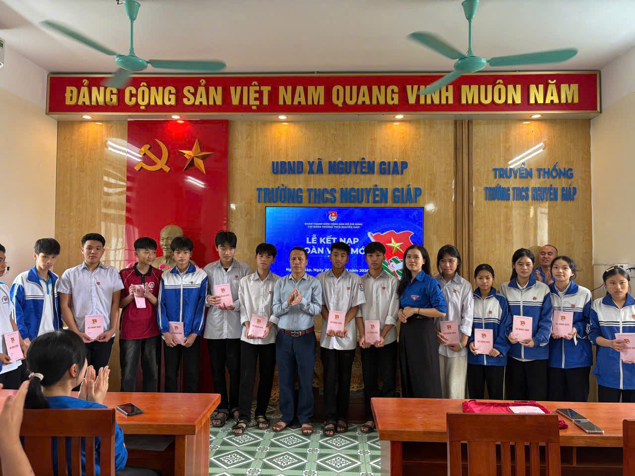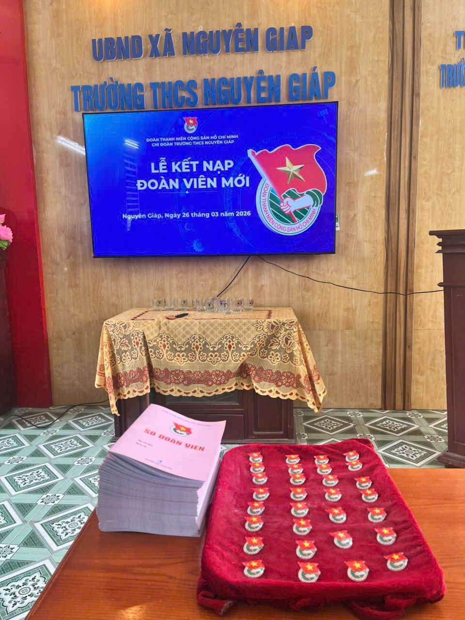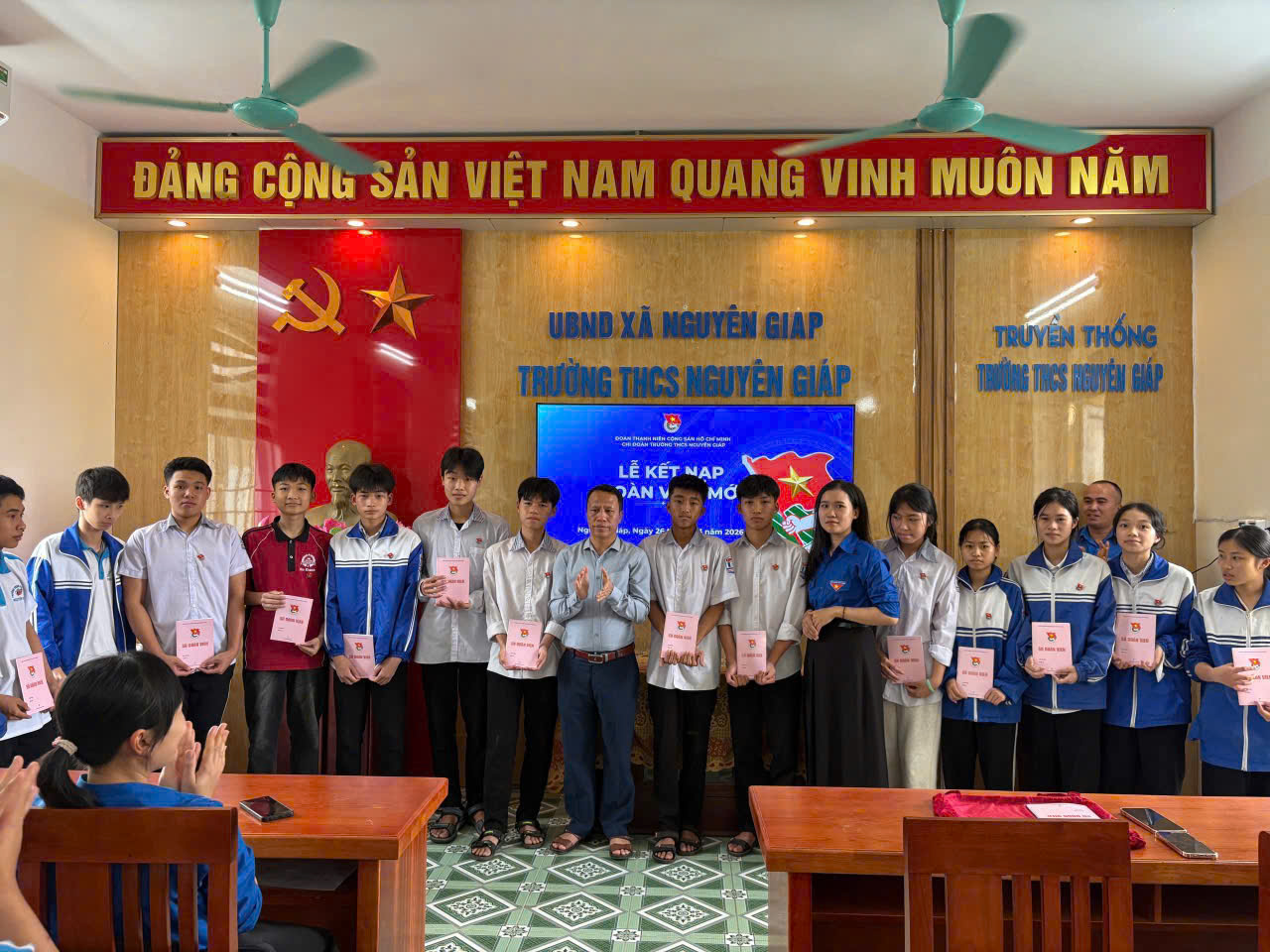 Nhân dịp kỷ niệm 95 năm ngày thành lập Đoàn Thanh niên Cộng sản Hồ Chí Minh (26/3/1931 – 26/3/2026), Đoàn TNCS Hồ Chí Minh xã Nguyên Giáp đã chỉ đạo Chi đoàn và Liên đội Trường THCS Nguyên Giáp long trọng tổ chức Lễ kết nạp đoàn viên mới năm 2026.