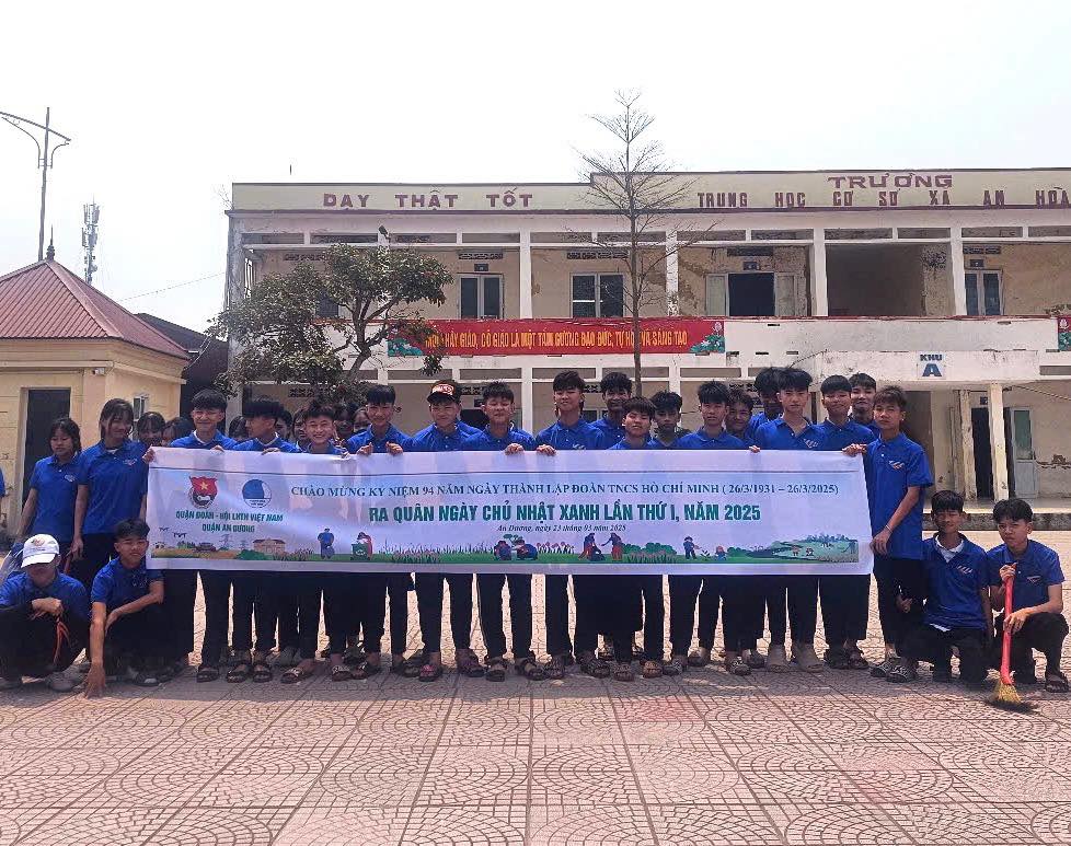 Sáng ngày 23/3/2025, Ban Thường vụ Quận đoàn An Dương tổ chức ra quân “Ngày Chủ nhật xanh”. Hoạt động này nhằm nâng cao ý thức bảo vệ môi trường và xây dựng cảnh quan xanh - sạch - đẹp trong cộng đồng.
