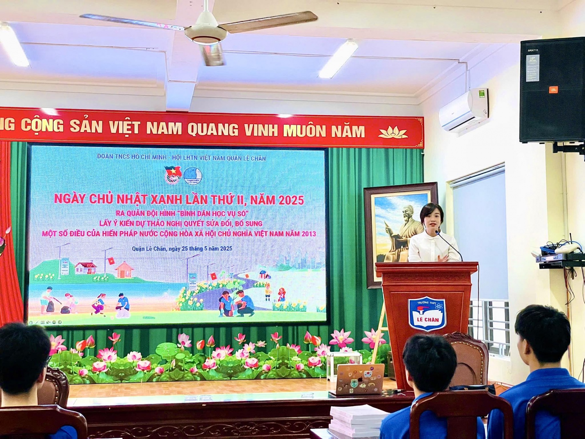 Thực hiện sự chỉ đạo của Thành Đoàn - Hội LHTN Việt Nam thành phố, ngày 25/5/2025, Quận Đoàn - Hội LHTN Việt Nam quận Lê Chân ra quân Ngày chủ nhật xanh lần thứ II - Triển khai Chiến dịch “Hoa phượng đỏ” năm 2025 - Ra quân đội hình “Bình dân học vụ số”. Đây là dịp màu áo xanh thanh niên thể hiện tinh thần đoàn kết, xung kích, tình nguyện làm những hành động đẹp, việc làm có ích góp phần xây dựng đô thị sáng, xanh, sạch, đẹp, an toàn, văn minh.