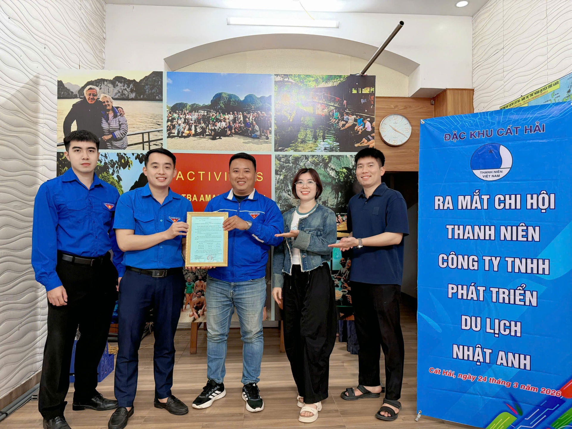 Chiều ngày 24/3/2026, Hội Liên hiệp Thanh niên Việt Nam đặc khu Cát Hải tổ chức Lễ ra mắt Chi hội thanh niên Công ty TNHH Phát triển Du lịch Nhật Anh với sự tham gia của 07 hội viên cùng các đại biểu đại diện các cơ sở Đoàn, Hội trực thuộc trên địa bàn đặc khu.