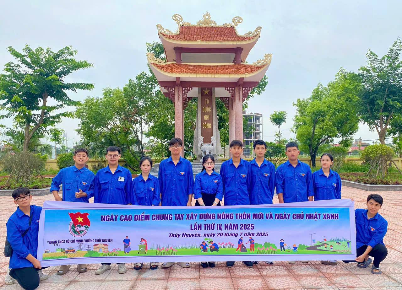 Nhằm hưởng ứng các hoạt động “Tuổi trẻ tri ân các anh hùng liệt sĩ” nhân kỷ niệm 78 năm Ngày Thương binh - Liệt sĩ (27/7/1947 – 27/7/2025), Ngày 20/7/2025, tuổi trẻ phường Thủy Nguyên ra quân hưởng ứng Ngày cao điểm “Chung tay xây dựng Nông thôn mới” và Chương trình “Ngày Chủ nhật xanh” với tinh thần trách nhiệm và lòng tri ân sâu sắc.