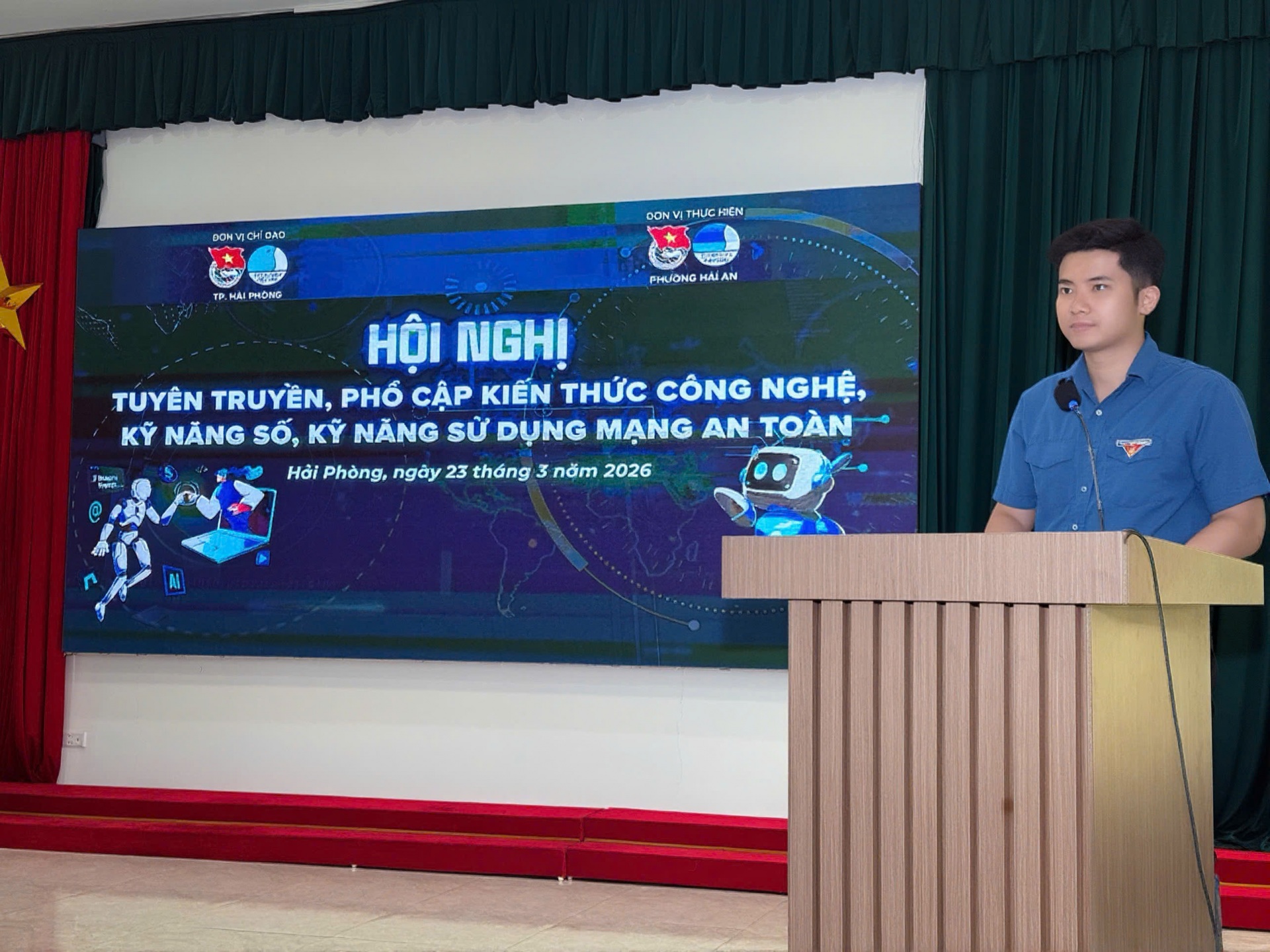 Thiết thực chào mừng kỷ niệm 95 năm Ngày thành lập Đoàn TNCS Hồ Chí Minh (26/3/1931 – 26/3/2026) và chào mừng thành công cuộc Bầu cử Đại biểu Quốc hội khóa XVI, đại biểu HĐND các cấp nhiệm kỳ 2026 – 2031, ngày 23/3/2026, Thành đoàn Hải Phòng chỉ đạo Đoàn phường Hải An tổ chức đăng cai Hội nghị tuyên truyền, phổ cập kiến thức công nghệ, kỹ năng số và kỹ năng sử dụng mạng an toàn.