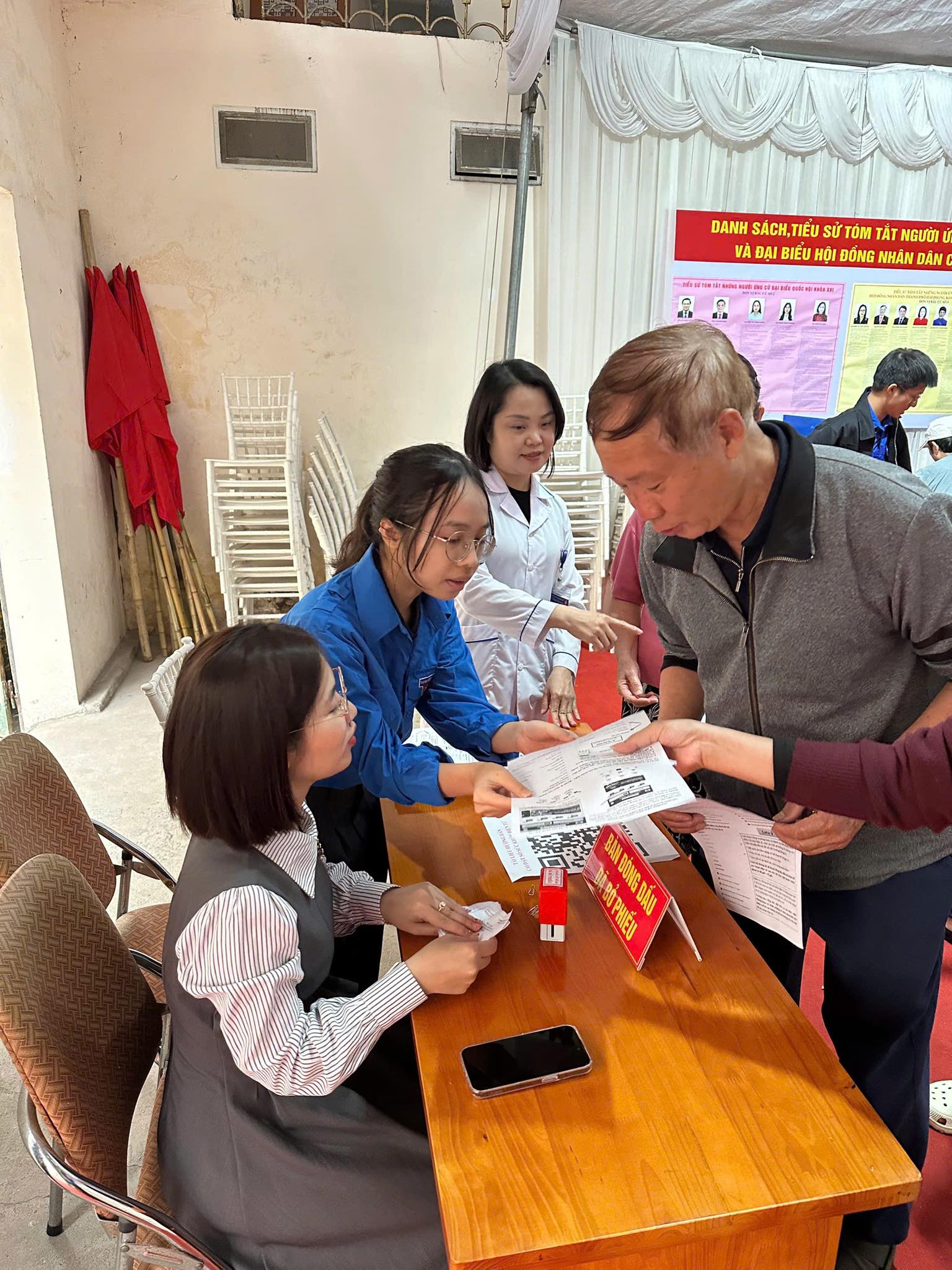 Ngay từ sáng sớm, các đội hình thanh niên tình nguyện đã có mặt tại các điểm bỏ phiếu để phối hợp cùng Ban Tổ chức thực hiện nhiều phần việc thiết thực như: hướng dẫn cử tri thực hiện quy trình bỏ phiếu, hỗ trợ khai báo thông tin, phân luồng, đảm bảo trật tự, an toàn giao thông khu vực xung quanh điểm bỏ phiếu. Đặc biệt, các đoàn viên còn tận tình hỗ trợ người cao tuổi, người khuyết tật, cử tri lần đầu tham gia bầu cử, giúp họ dễ dàng thực hiện quyền và nghĩa vụ công dân.
