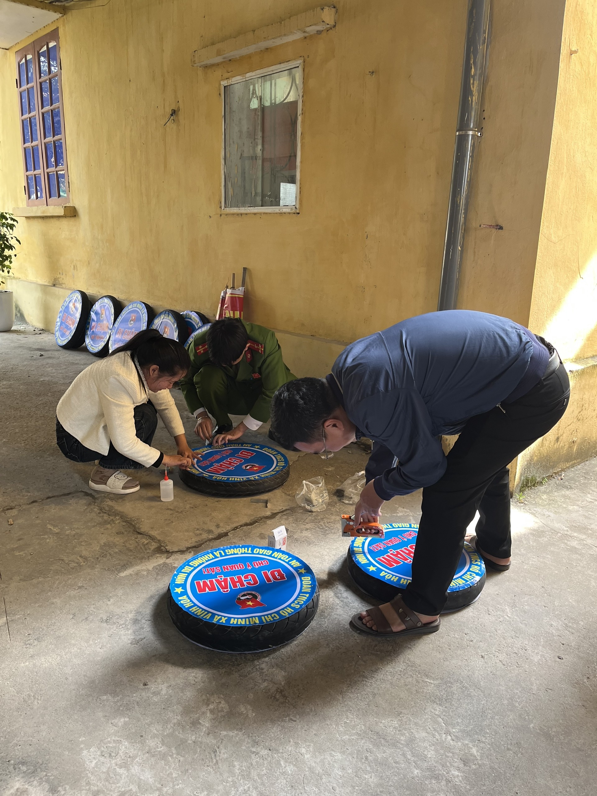 Ngày 10/3/2025,Đoàn Thanh niên xã tiến hành ra quân tái chế lốp xe đã qua sử dụng, sơn sửa, gắn biển cảnh báo để cảnh báo nguy hiểm tại khu vực ngã ba, ngã tư, tiềm ẩn nguy cơ tai nạn giao thông, đến nay đã lắp đặt được 18 điểm trên địa bàn xã.