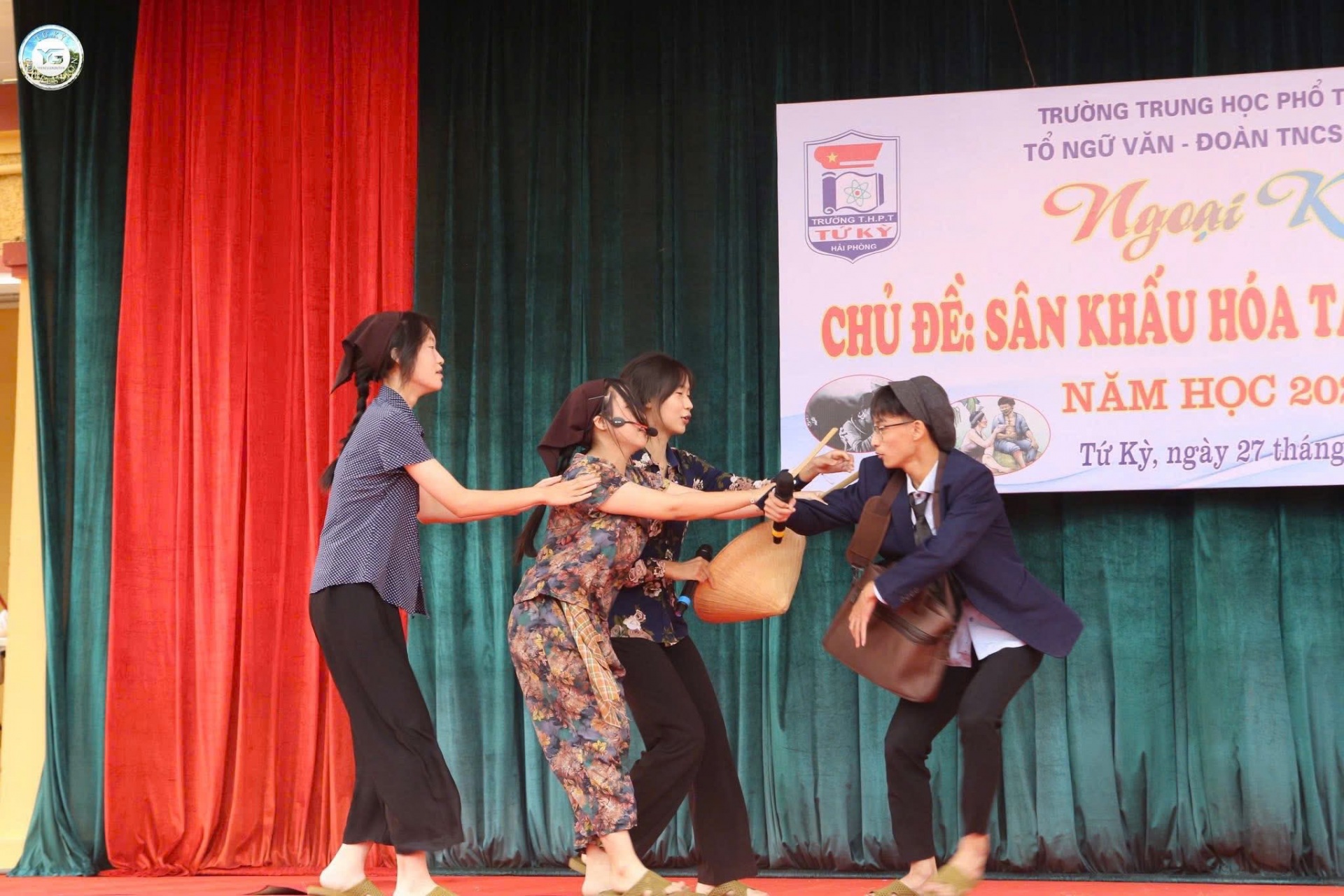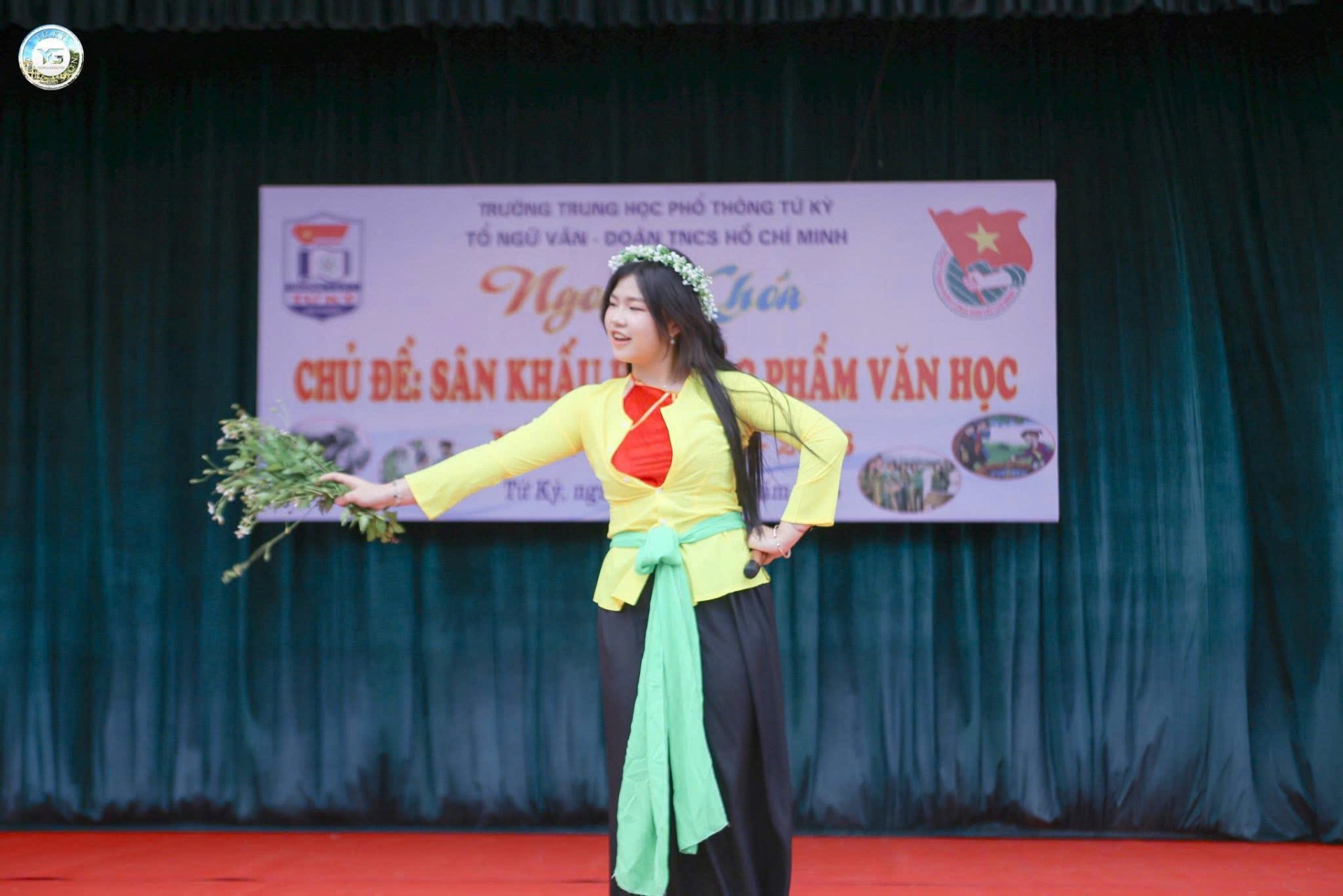Sáng 27/10/2025, trong tiết trời mát mẻ, trường THPT Tứ Kỳ bỗng trở nên rộn ràng hơn bao giờ hết. Hoạt động “Sân khấu hoá tác phẩm văn học” đã thật sự mang đến một không gian tràn đầy cảm xúc - nơi văn chương không chỉ được đọc, mà còn được sống, được hoá thân.
