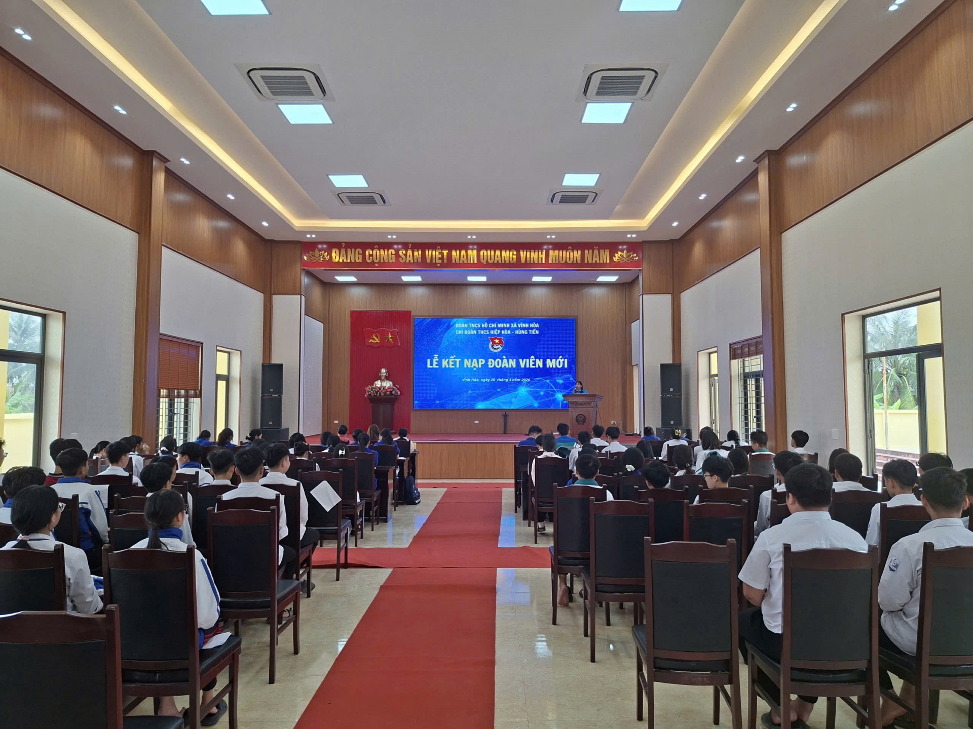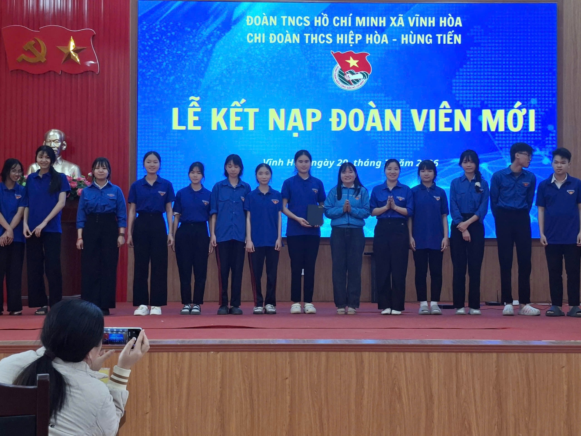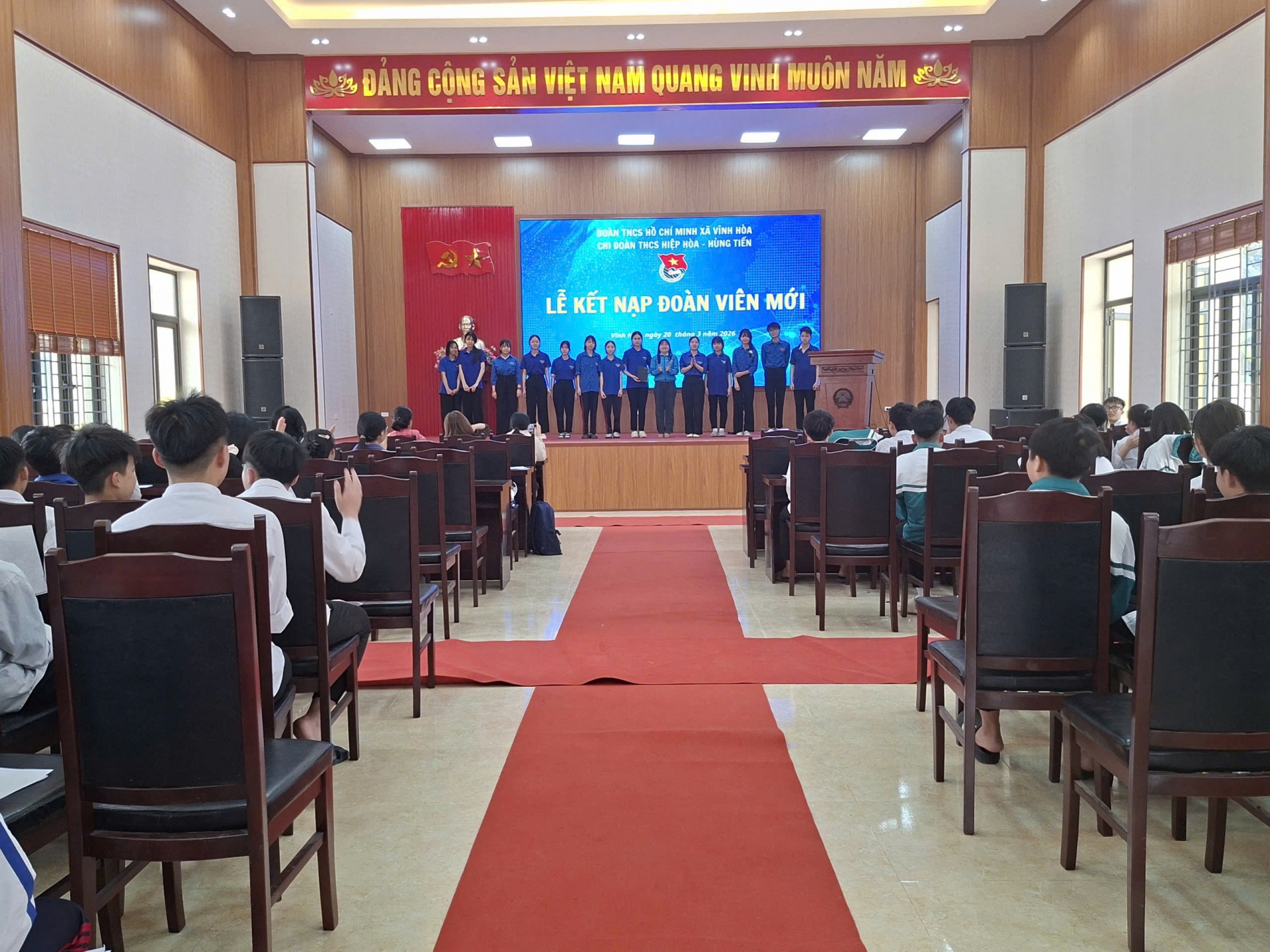 Ngày 20/3/2025 tại Nhà văn hóa xã Vĩnh Hòa, Chi đoàn THCS Hiệp Hòa - Hùng Tiến tổ chức kết nạp đoàn viên mới