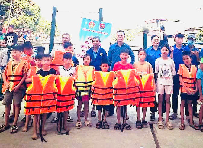 Thiết thực tổ chức các hoạt động cho thanh thiếu nhi trong dịp hè, Đoàn thanh niên xã tổ chức hướng dẫn các bước khởi động trước khi bơi, tuyên truyền cho thanh thiếu nhi phòng chống tai nạn khi bơi, tặng áo phao cho các em thiếu nhi có hoàn cảnh khó khăn tại thôn Tạ Ngoại 1, xã Vĩnh Hòa