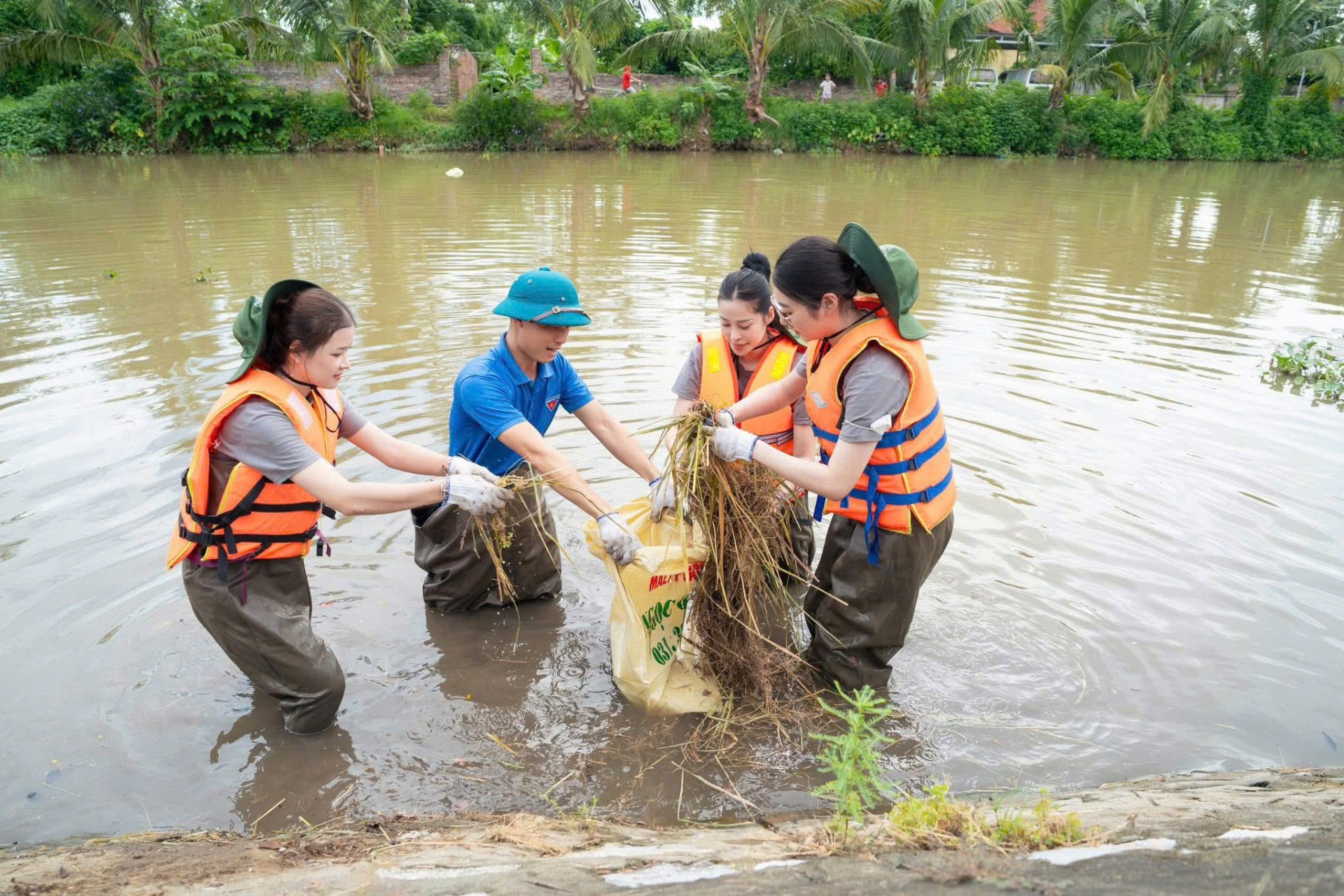 Các hoạt động được diễn ra tại huyện Tiên Lãng, Thành phố Hải Phòng, Top 46 thí sinh Hoa hậu Trái Đất Việt Nam 2025 cùng các bạn đoàn viên thanh niên, học sinh ở địa phương dọn dẹp rác thải ven đường khu vực Cầu Đen, nạo vét, làm sạch mương để đảm bảo vệ sinh môi trường và hạn chế ô nhiễm nguồn nước.