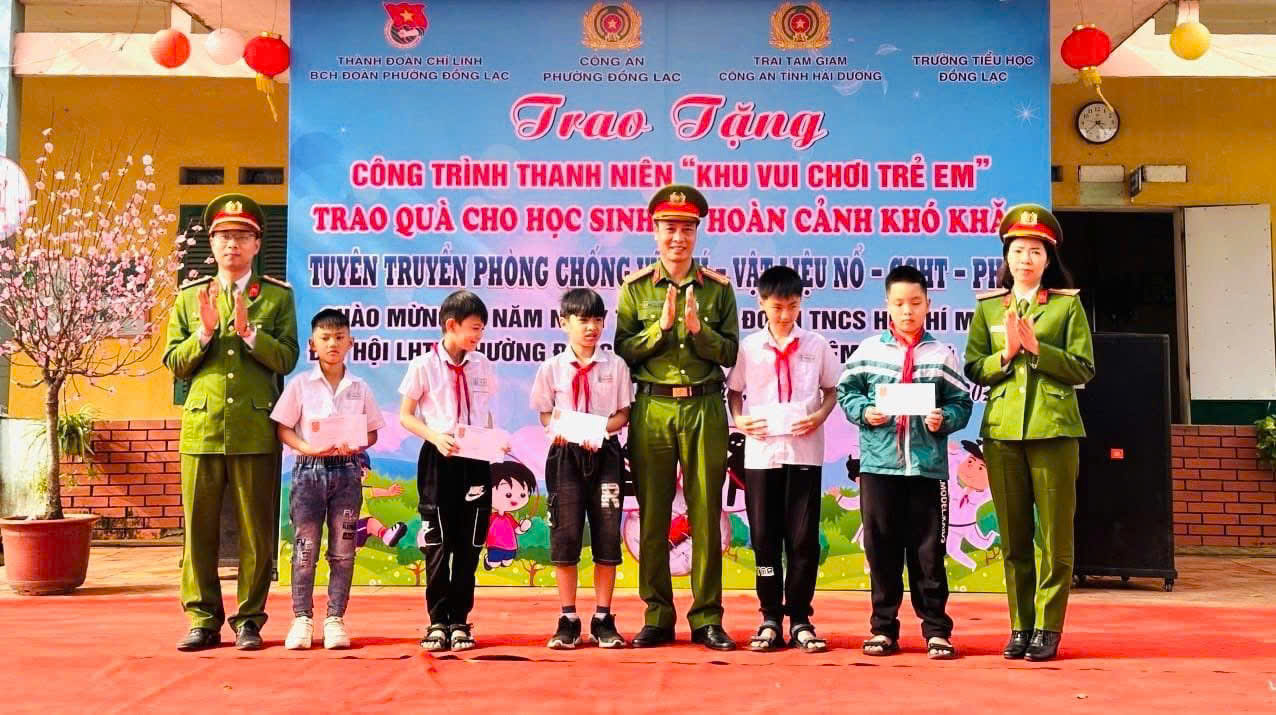 Đoàn phường Phối hợp với trường tiểu học Đồng lạc, Trại tạm giam công an tỉnh Hải Dương, Công an phường, Doanh nghiệp tư nhân vàng bạc Đức Hùng tổ chức chương trình : Trao tặng Công trình thanh niên " Khu vui chơi trẻ em"; tặng quà cho học sinh có hoàn cảnh khó khăn; Tuyên truyền phòng chống vũ khi - vật liệu nổ - CCHT - pháo vào ngày 6/11/2024.