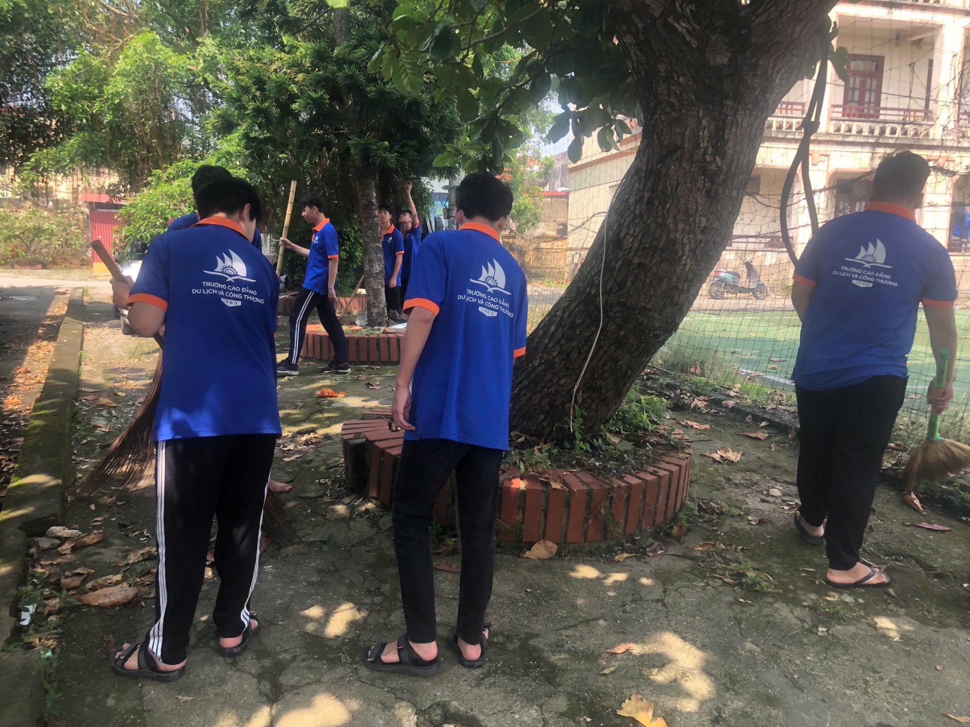 Với đặc thù đào tạo ngành du lịch, dịch vụ và thương mại – lĩnh vực gắn liền với môi trường xanh, sạch, văn minh – hoạt động được triển khai tại nhiều khu vực trọng điểm trong trường: sân chính, khu giảng đường, khu thực hành nghề lễ tân – buồng phòng – nhà hàng, ký túc xá và các tuyến đường nội bộ. Ngay từ đầu giờ sáng, các đội hình thanh niên đã tiến hành tổng vệ sinh, quét dọn rác thải, phát quang cây dại, vệ sinh khu thực hành dịch vụ và thu gom rác tại khu vực bếp thực hành.