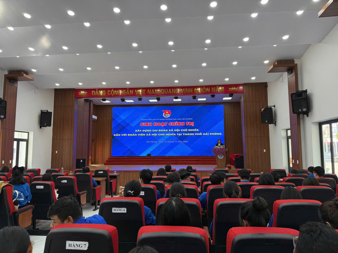 Ngày 12/11/2025, Đoàn TNCS Hồ Chí Minh Trường Đại học Hải Phòng đã tổ chức thành công buổi sinh hoạt chính trị chuyên đề "Xây dựng Chi đoàn Xã hội chủ nghĩa gắn với Đoàn viên Xã hội chủ nghĩa tại Thành phố Hải Phòng". Đây là hoạt động trọng điểm nhằm quán triệt, triển khai các giải pháp cụ thể hóa tinh thần Nghị quyết Đại hội Đoàn các cấp và bồi dưỡng lý tưởng cách mạng cho Đoàn viên, thanh niên