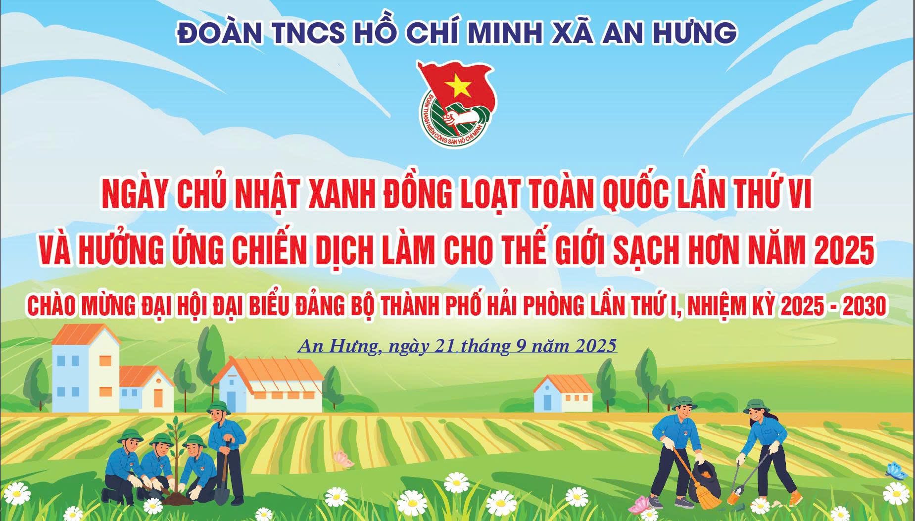 TUỔI TRẺ AN HƯNG RA QUÂN NGÀY CHỦ NHẬT XANH – PHÒNG CHỐNG RÁC THẢI NHỰA - CHUNG TAY XÂY DỰNG NÔNG THÔN MỚI, CHÀO MỪNG ĐẠI HỘI ĐẠI BIỂU ĐẢNG BỘ THÀNH PHỐ LẦN THỨ I, NHIỆM KỲ 2025 – 2030