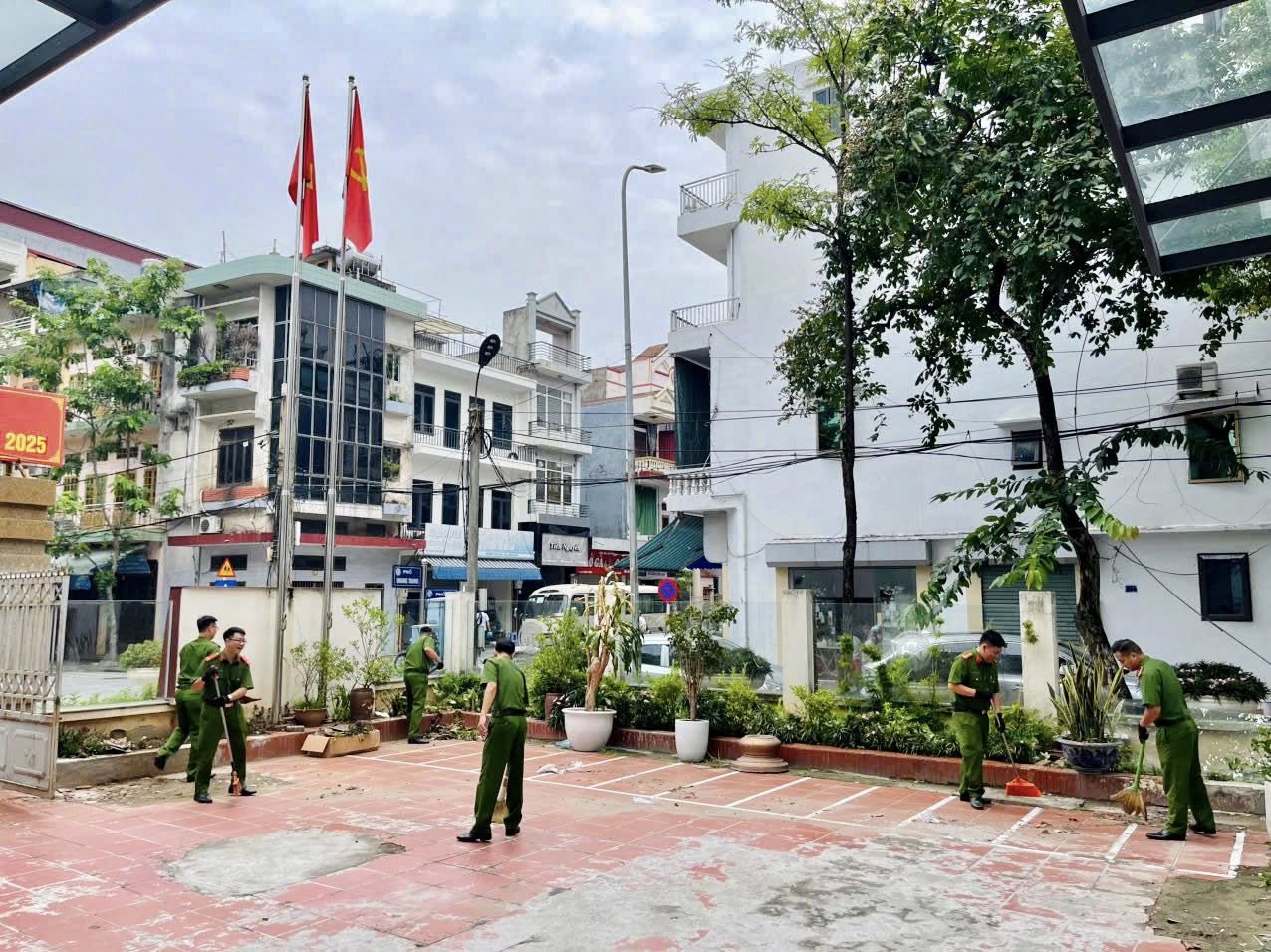 Hưởng ứng thiết thực "Ngày Chủ Nhật Xanh" do Đoàn cấp trên phát động, lực lượng Đoàn viên, thanh niên Công an Thành phố đã đồng loạt tổ chức ra quân tổng dọn vệ sinh, làm sạch và đẹp khuôn viên trụ sở làm việc.