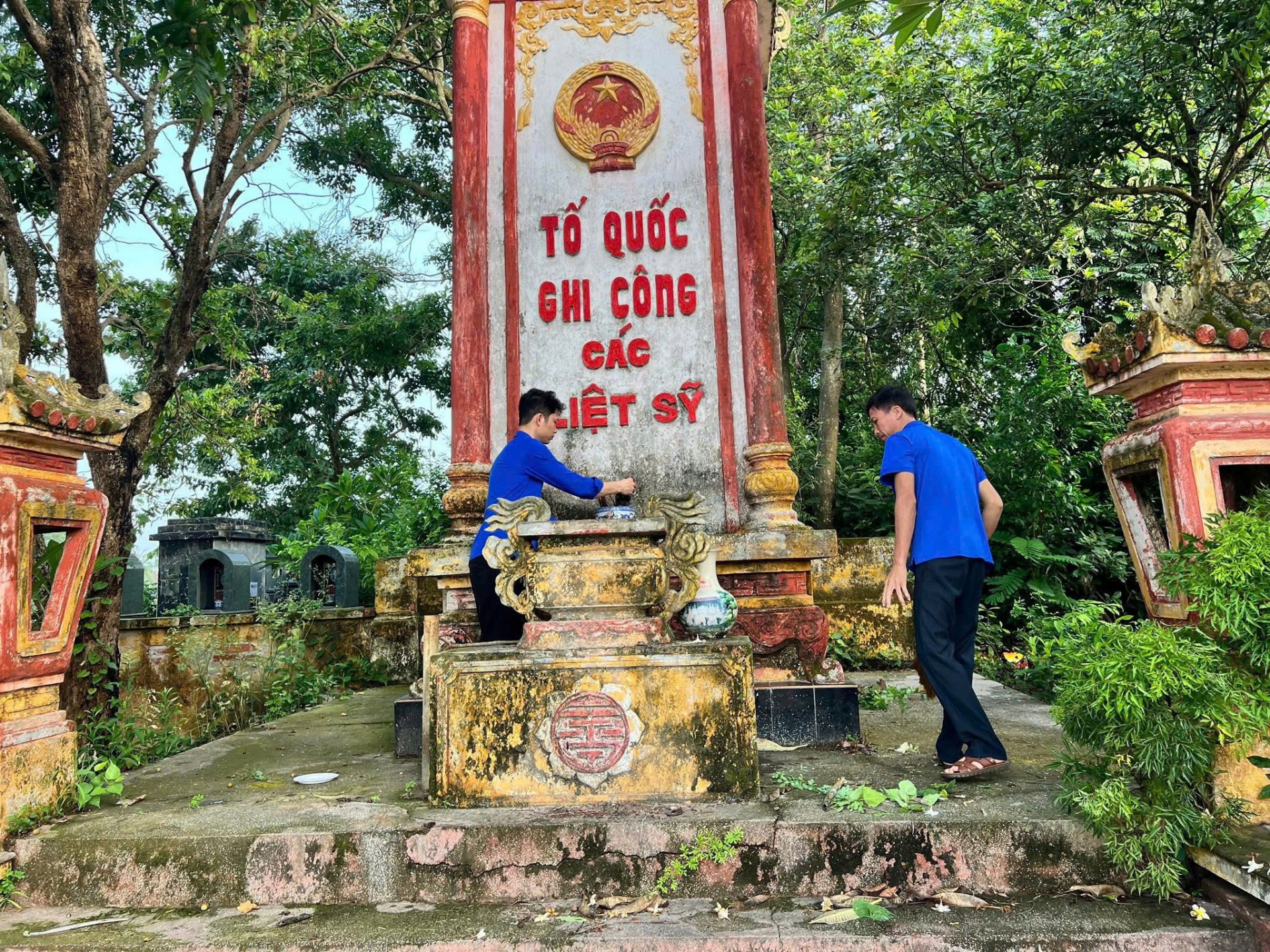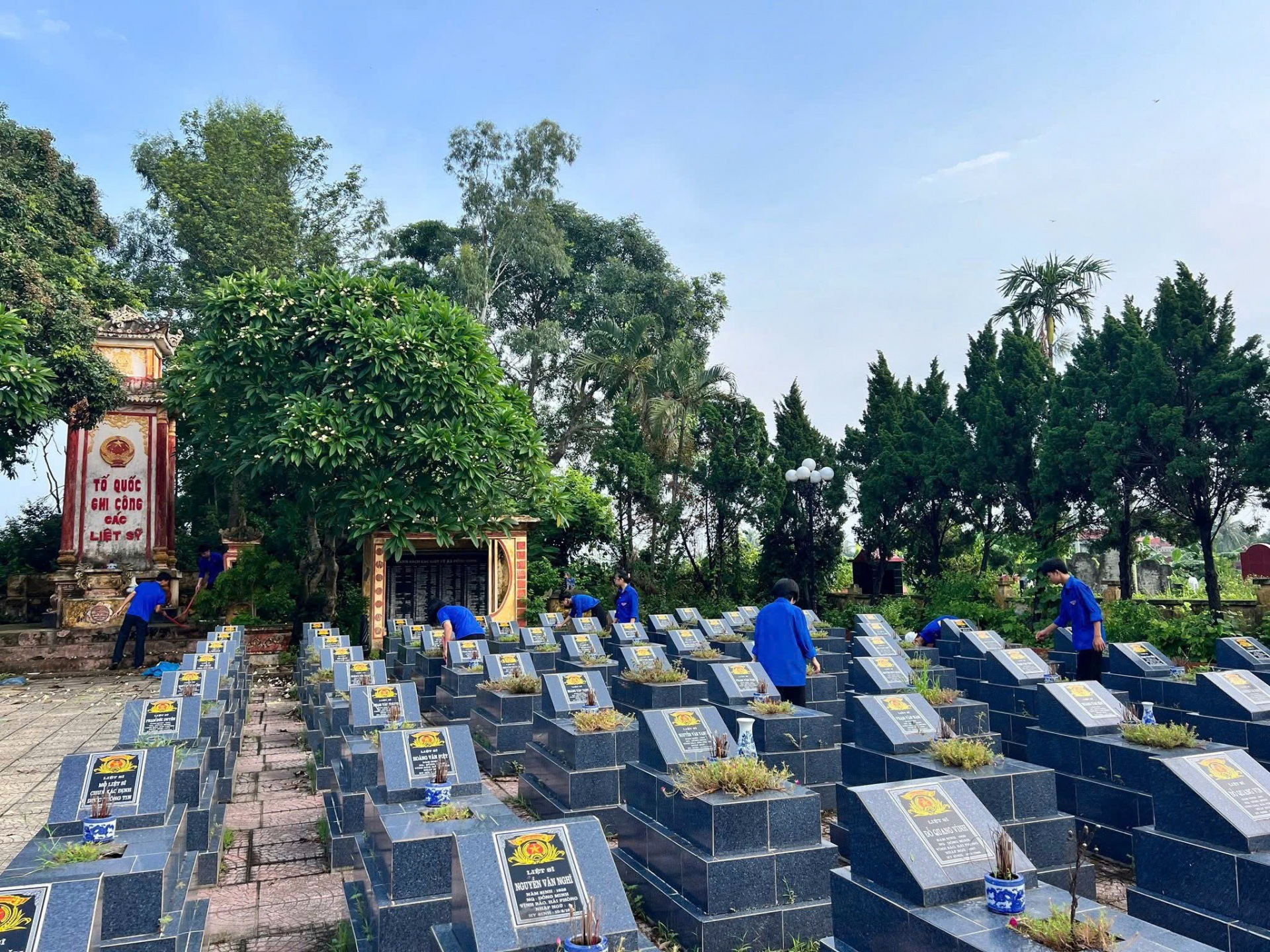 Tuổi trẻ Đoàn thanh niên phường Bạch Đằng ra quân ngày 21/9 dọn dẹp, tôn tạo lại các phần mộ liệt sĩ, đền thờ