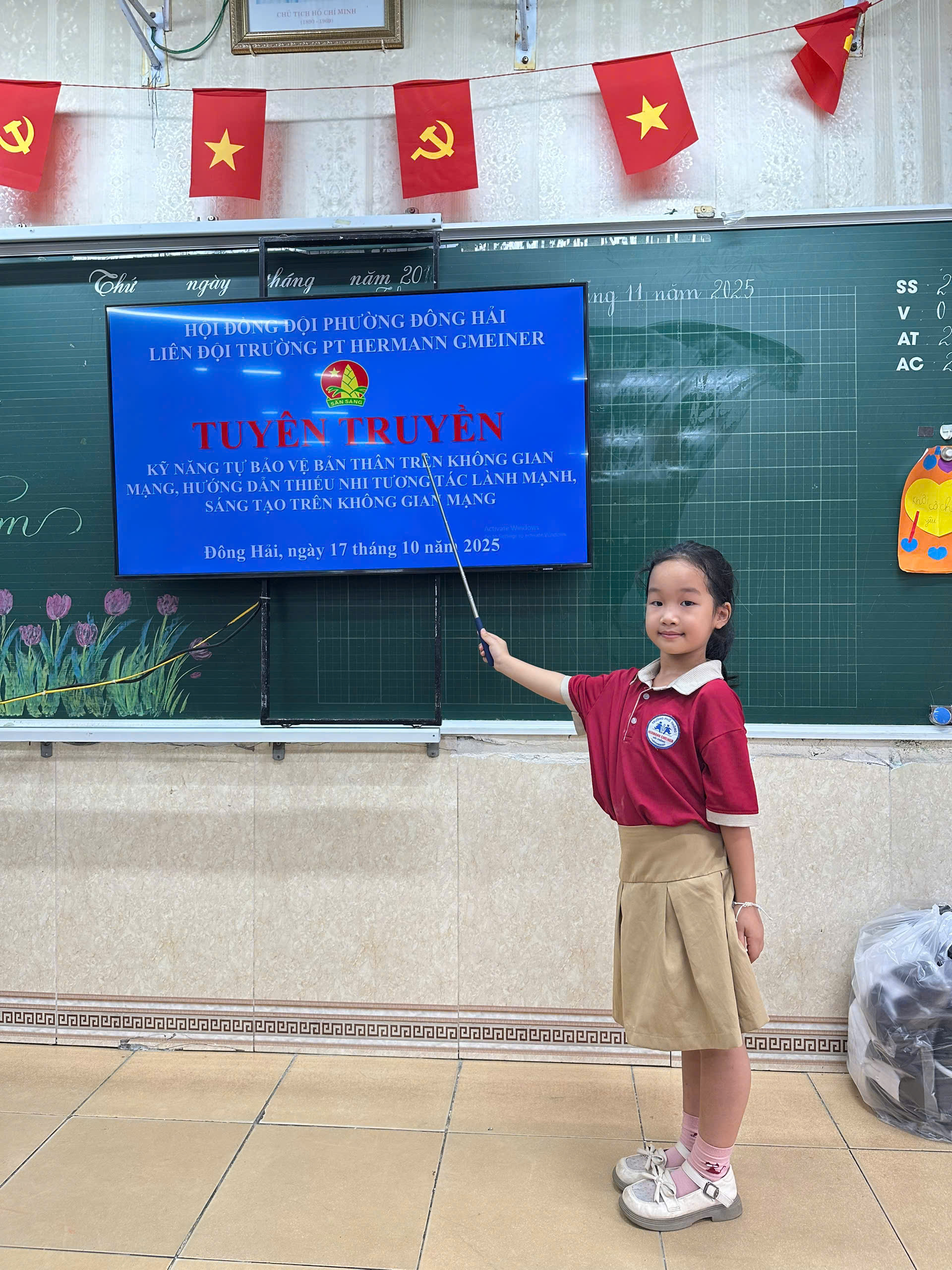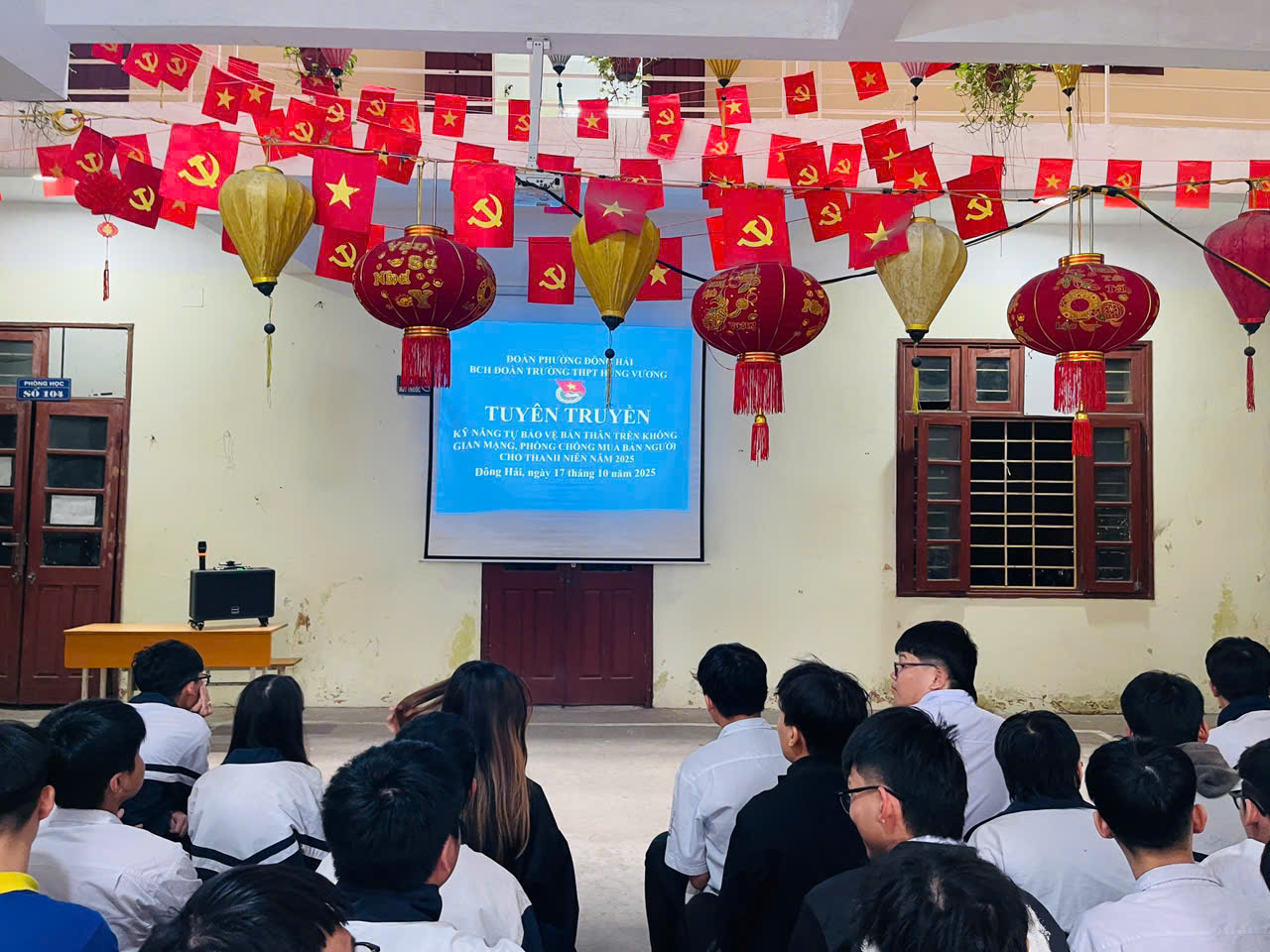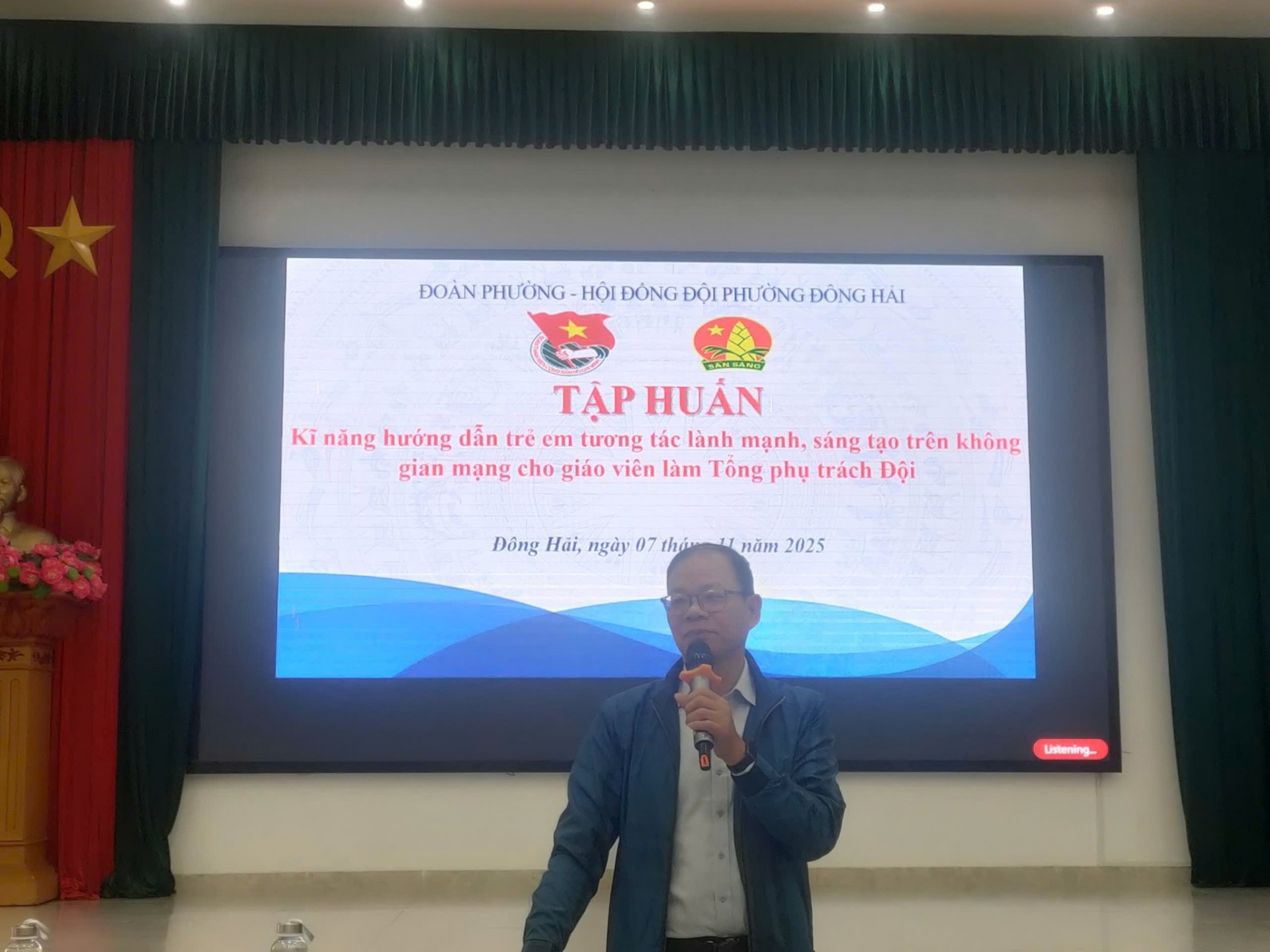 Thực hiện Chương trình Công tác Đoàn, Hội và phong trào thanh thiếu nhi năm 2025, Chương trình Công tác Đoàn, Đội và phong trào thanh thiếu nhi năm học 2025 - 2026, Đoàn phường - Hội LHTN Việt Nam - Hội đồng Đội phường Đông Hải chỉ đạo các cơ sở trực thuộc đồng loạt triển khai mô hình "TUYÊN TRUYỀN KỸ NĂNG TỰ BẢO VỆ BẢN THÂN TRÊN KHÔNG GIAN MẠNG, HƯỚNG DẪN KĨ NĂNG TƯƠNG TÁC LÀNH MẠNH, SÁNG TẠO TRÊN KHÔNG GIAN MẠNG, TUYÊN TRUYỀN PHÒNG CHỐNG MUA BÁN NGƯỜI CHO THANH THIẾU NHI" tại đơn vị lồng ghép với các hoạt động phối hợp cùng Công an phường tổ chức tuyên truyền cho thanh thiếu nhi, tổ chức sinh hoạt chi đoàn, chi đội, tổ chức các hoạt động sân khấu hoá; đến nay, 100% các đơn vị đã thực hiện và tổ chức tuyên truyền sâu rộng tới các chi đoàn, chi đội thu hút đông đảo đoàn viên, đội viên, thanh thiếu nhi tham gia. Đây là hoạt động thiết thực của tuổi trẻ phường góp phần nâng cao kĩ năng số, chuyển đổi số đặc biệt là trên môi trường mạng, trang bị kĩ năng phòng chống lừa đảo, tự bảo vệ bản thân trên không gian mạng cho thanh thiếu nhi. Dưới đây là 1 số hình ảnh: