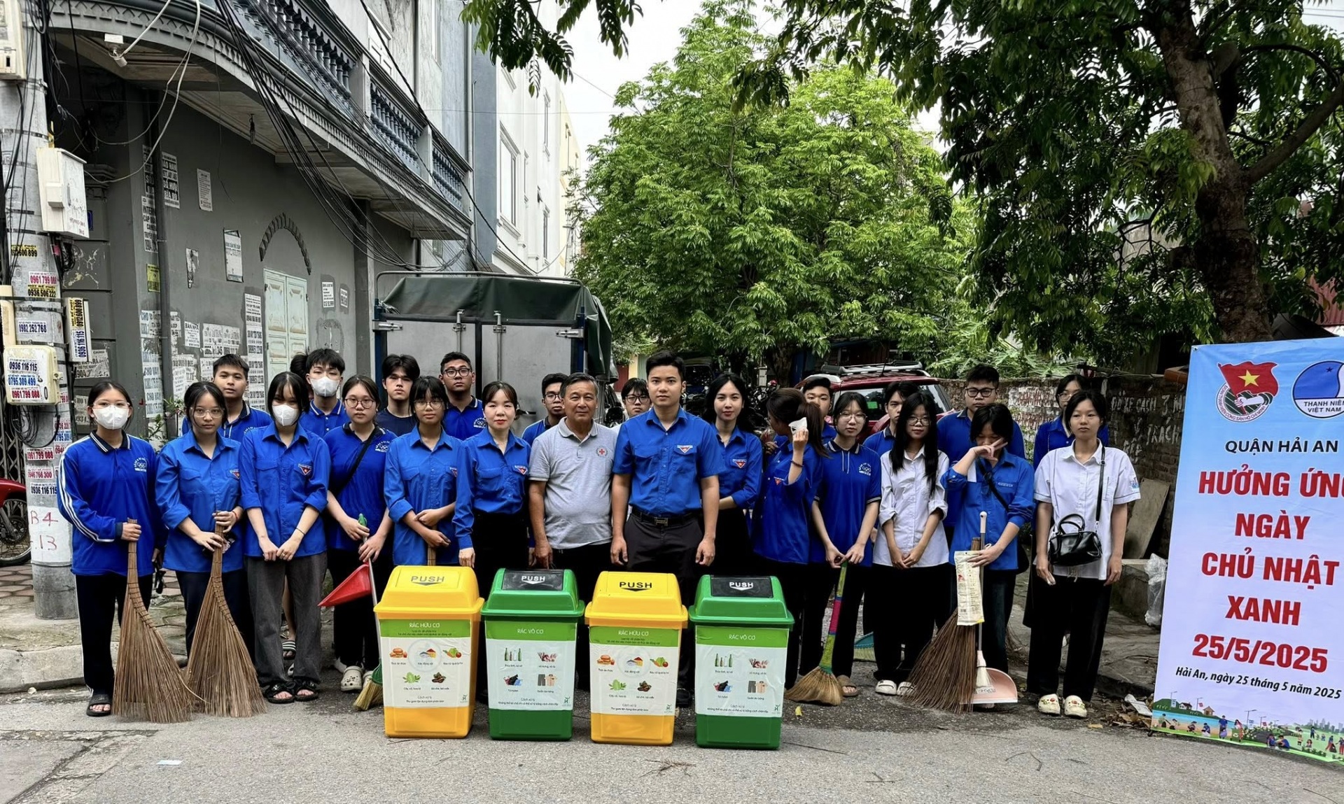 Hưởng ứng tổ chức các hoạt động Ngày Chủ nhật xanh 25/5. Ban Thường vụ Quận đoàn - Hội LHTN Việt Nam quận Hải An triển khai mô hình sáng tạo "Đội phản ứng nhanh diệt muỗi, diệt lăng quăng" và trao tặng thùng rác phân loại rác thải nhựa.
