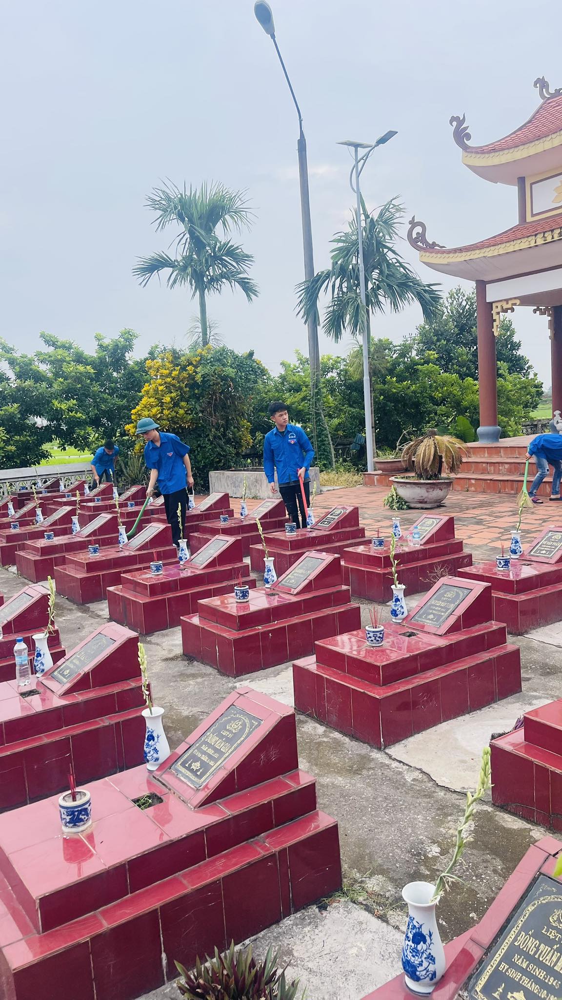 Với lòng tri ân sâu sắc, hơn 80 đoàn viên, thanh niên từ các Đoàn cơ sở và chi đoàn trực thuộc đã tham gia dâng hương, làm cỏ, quét dọn, lau rửa bia mộ liệt sĩ, thu gom rác thải, tạo cảnh quan xanh – sạch – đẹp tại khu vực nghĩa trang.