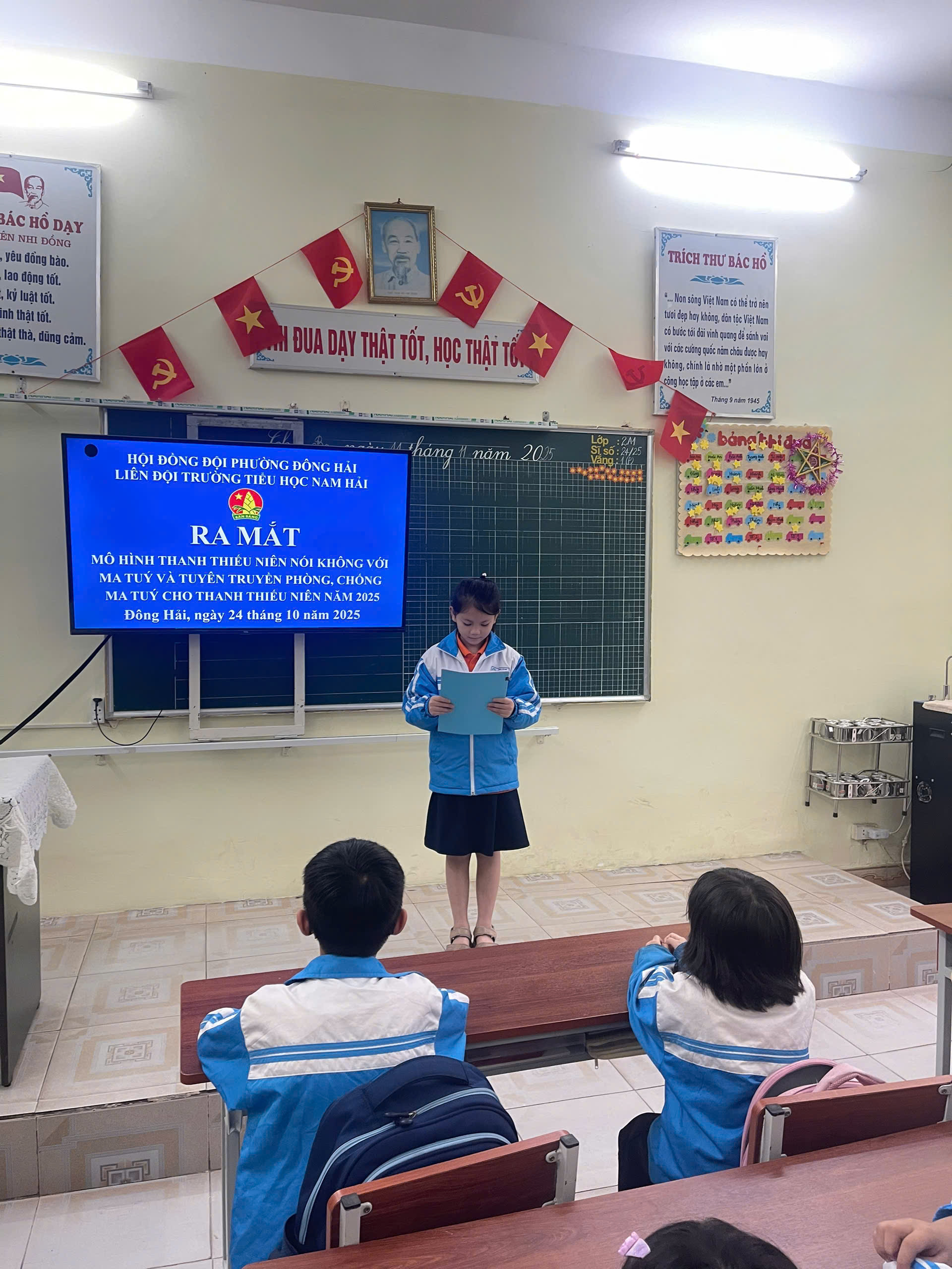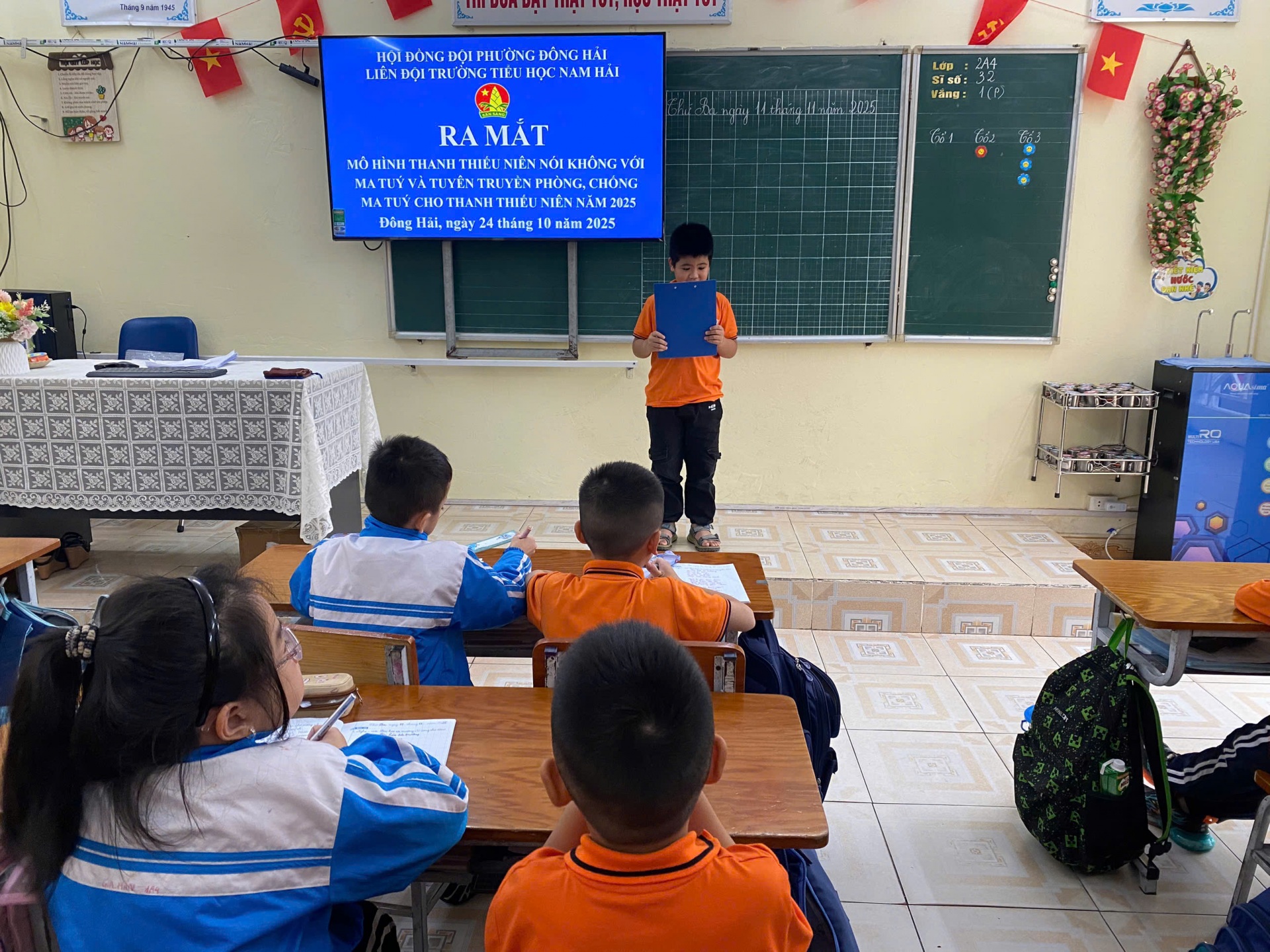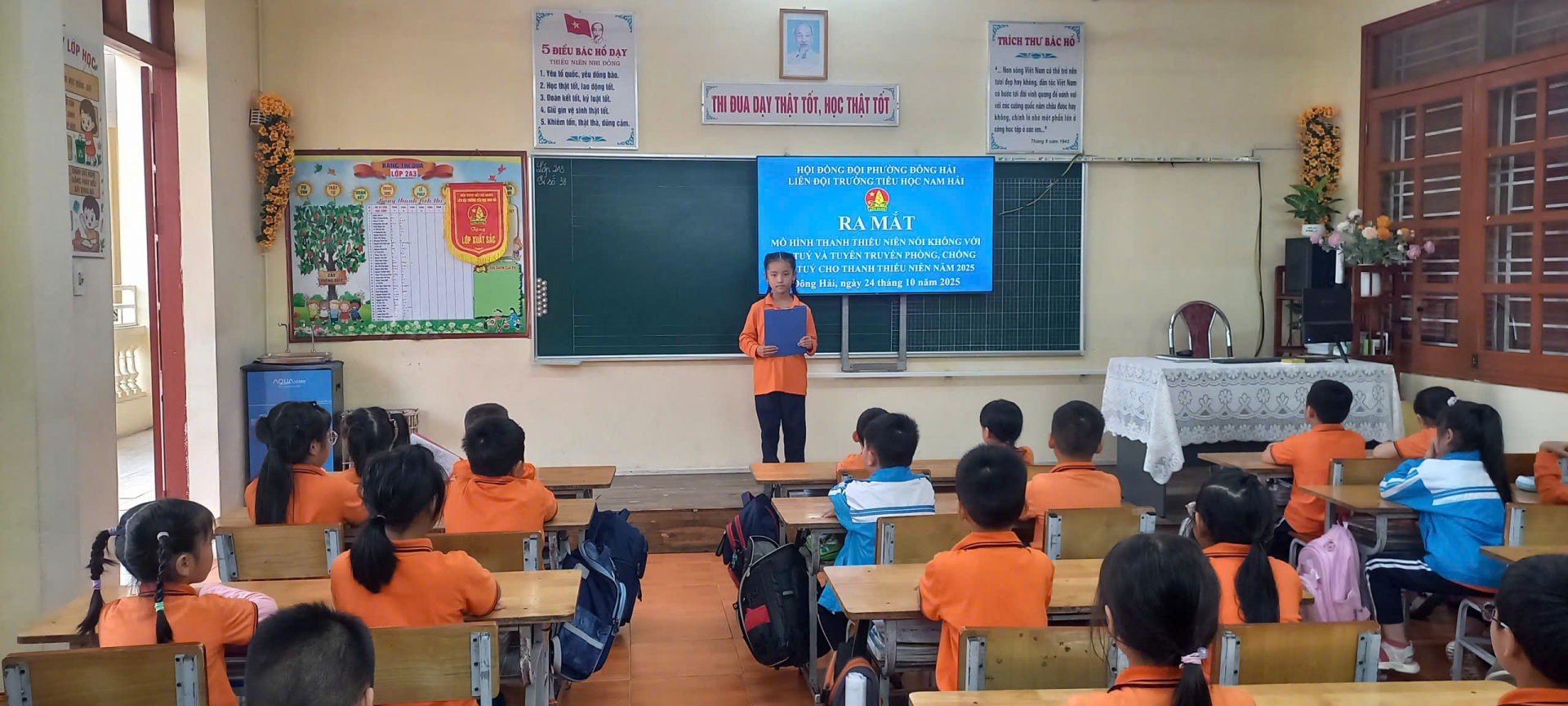 Thực hiện Chương trình Công tác Đoàn, Hội và phong trào thanh thiếu nhi năm 2025, Chương trình Công tác Đoàn, Đội và phong trào thanh thiếu nhi năm học 2025 - 2026, Đoàn phường - Hội LHTN Việt Nam - Hội đồng Đội phường Đông Hải chỉ đạo các cơ sở trực thuộc đồng loạt triển khai mô hình "Thanh thiếu nhi nói không với ma tuý" tại đơn vị lồng ghép với các hoạt động phối hợp cùng Công an phường tổ chức tuyên truyền cho thanh thiếu nhi, tổ chức sinh hoạt chi đoàn, chi đội, tổ chức các hoạt động sân khấu hoá; đến nay, 100% các đơn vị đã thực hiện và tổ chức tuyên truyền sâu rộng tới các chi đoàn, chi đội thu hút đông đảo đoàn viên, đội viên, thanh thiếu nhi tham gia. Đây là hoạt động thiết thực của tuổi trẻ phường góp phần xây dựng thành phố và phường Đông Hải không ma tuý. Dưới đây là 1 số hình ảnh: