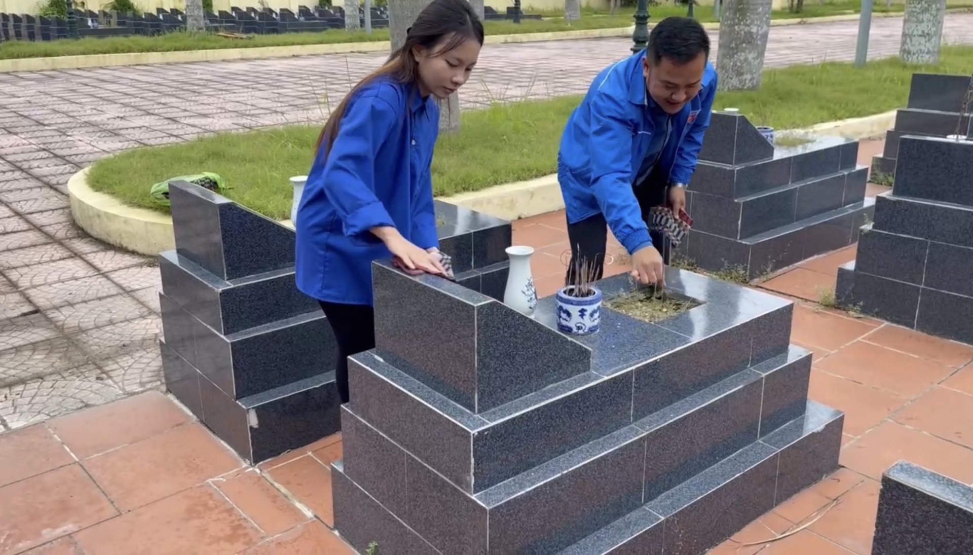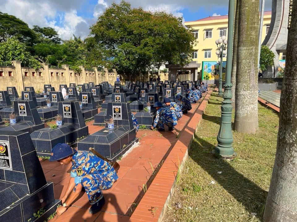 Ngay sau lễ dâng hương, đoàn viên, thanh niên đã tích cực ra quân thực hiện các phần việc thiết thực như: quét dọn khuôn viên, thu gom rác thải, phát quang bụi rậm, nhổ cỏ, lau chùi bia mộ, chỉnh trang các phần mộ liệt sĩ và các hạng mục công trình trong khuôn viên nghĩa trang. Những hành động tuy nhỏ nhưng mang ý nghĩa lớn, thể hiện tinh thần xung kích, tình nguyện, trách nhiệm của tuổi trẻ trong công tác “Đền ơn đáp nghĩa”.
